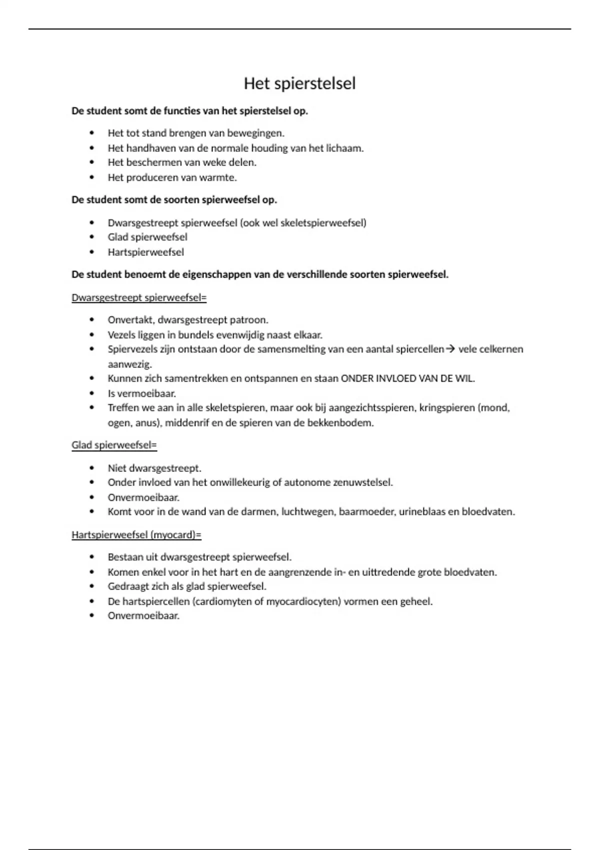 De student benoemt de eigenschappen van de verschillende soorten spierweefsel.
