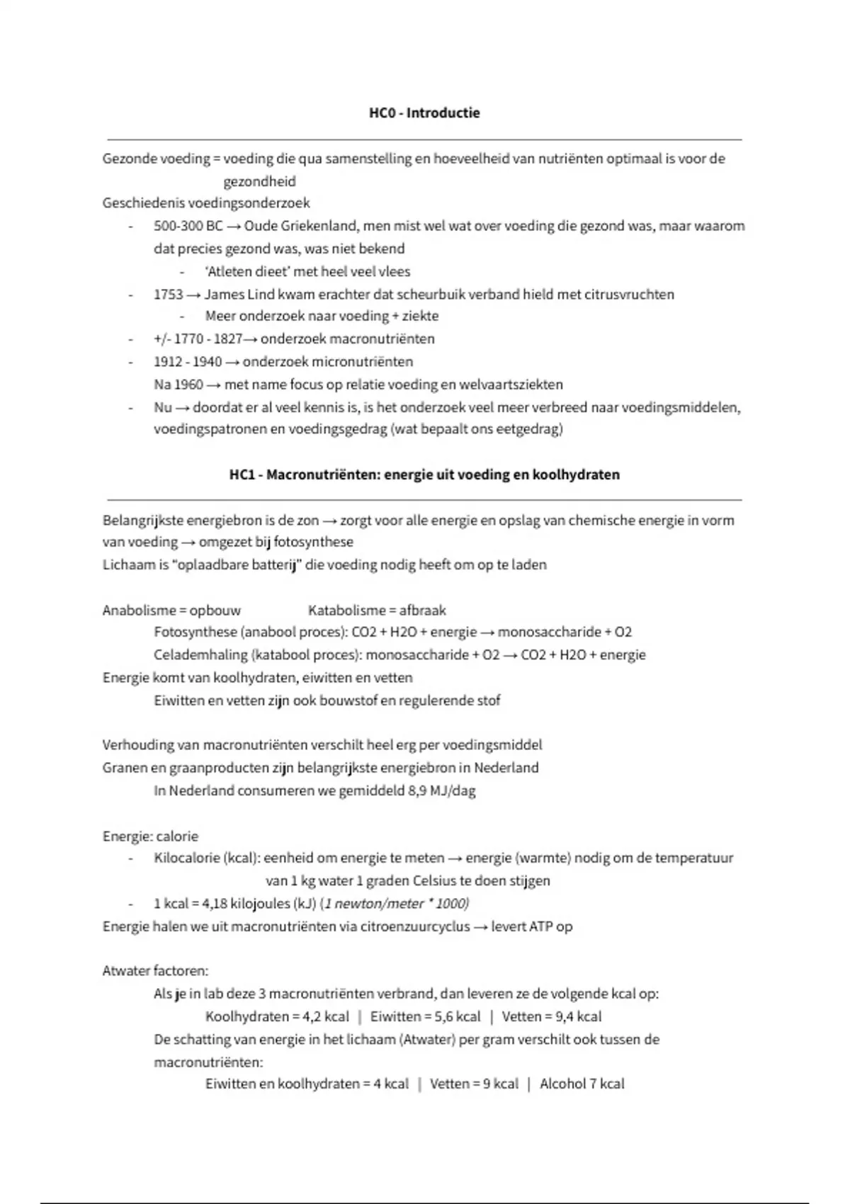 Uitgebreide aantekeningen van alle hoorcolleges voeding uit jaar 2