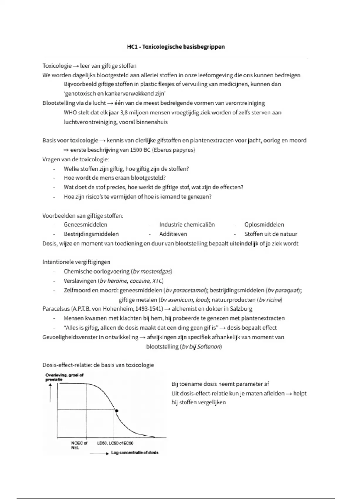 Aantekeningen toxicologie jaar 2