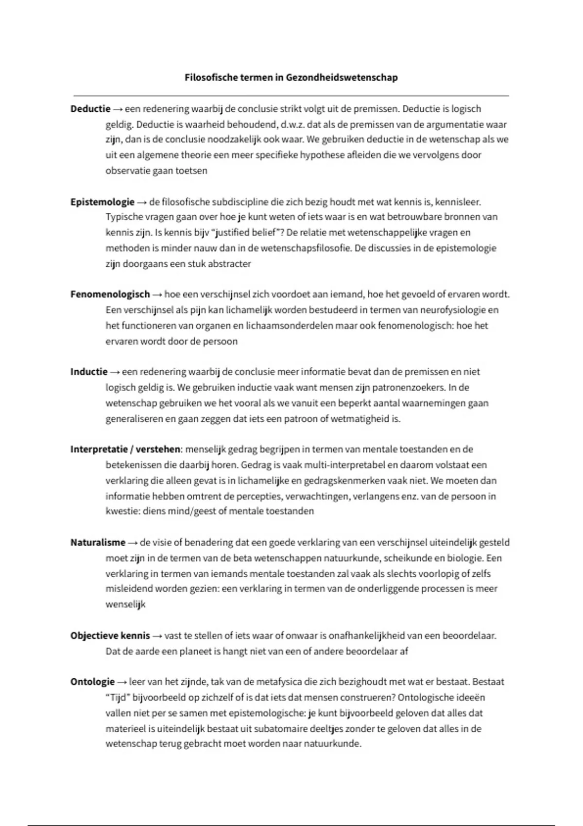 Uitgebreide aantekeningen van filosofie uit het vak reflectie op gezondheidswetenschappen uit jaar 2
