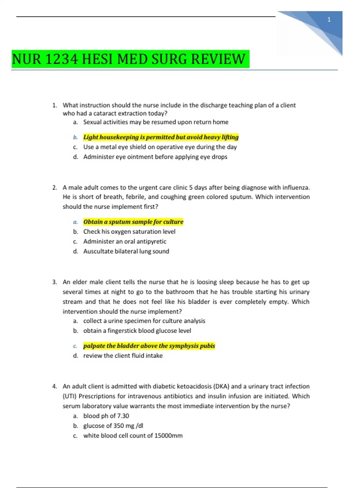 NUR 1234 HESI MED SURG REVIEW QUESTIONS WITH100% VERIFIED ANSWERS COMPLETE SOLUTION
