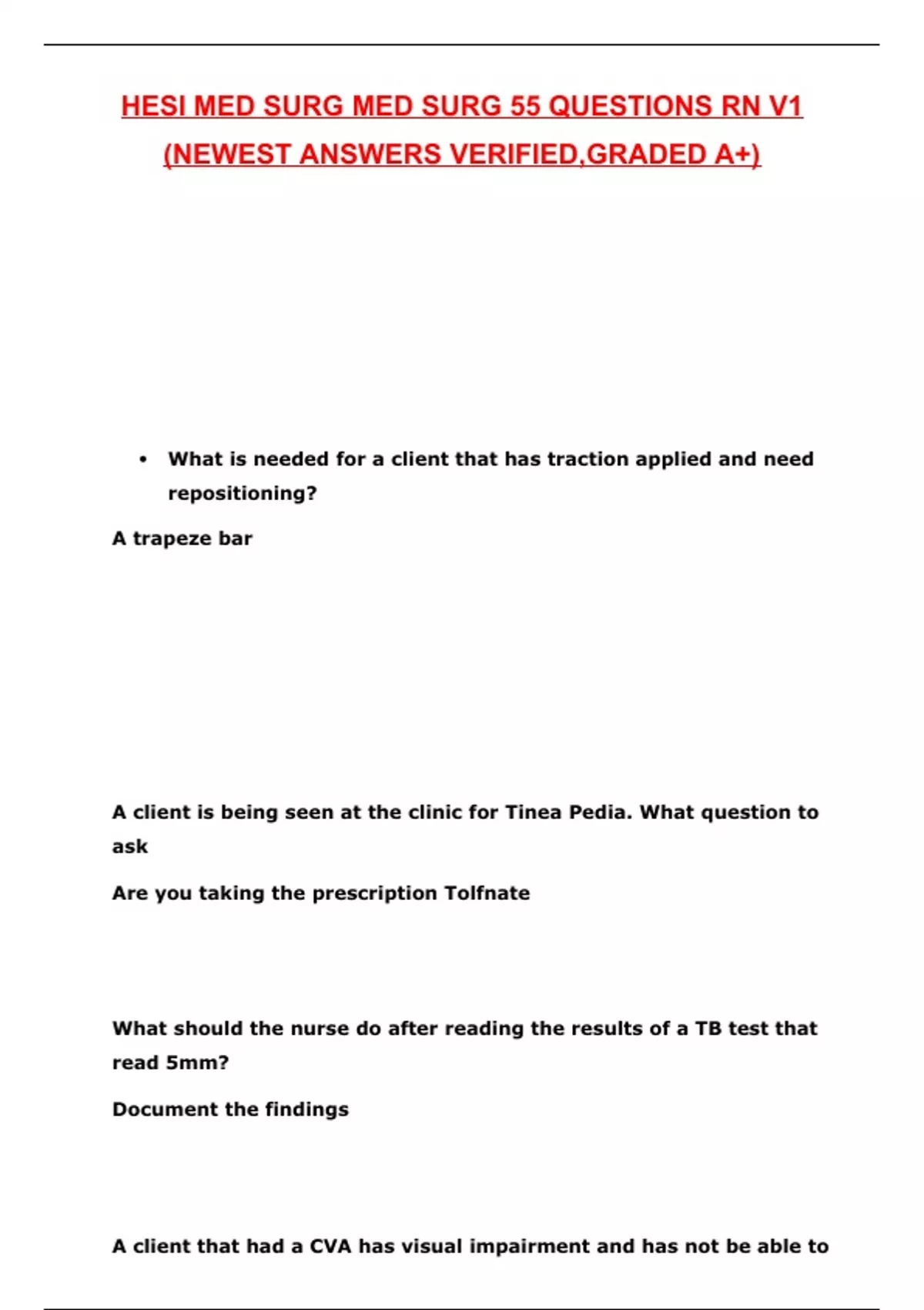 HESI MED SURG MED SURG 55 QUESTIONS RN V1 (NEWEST ANSWERS VERIFIED,GRADED A+)