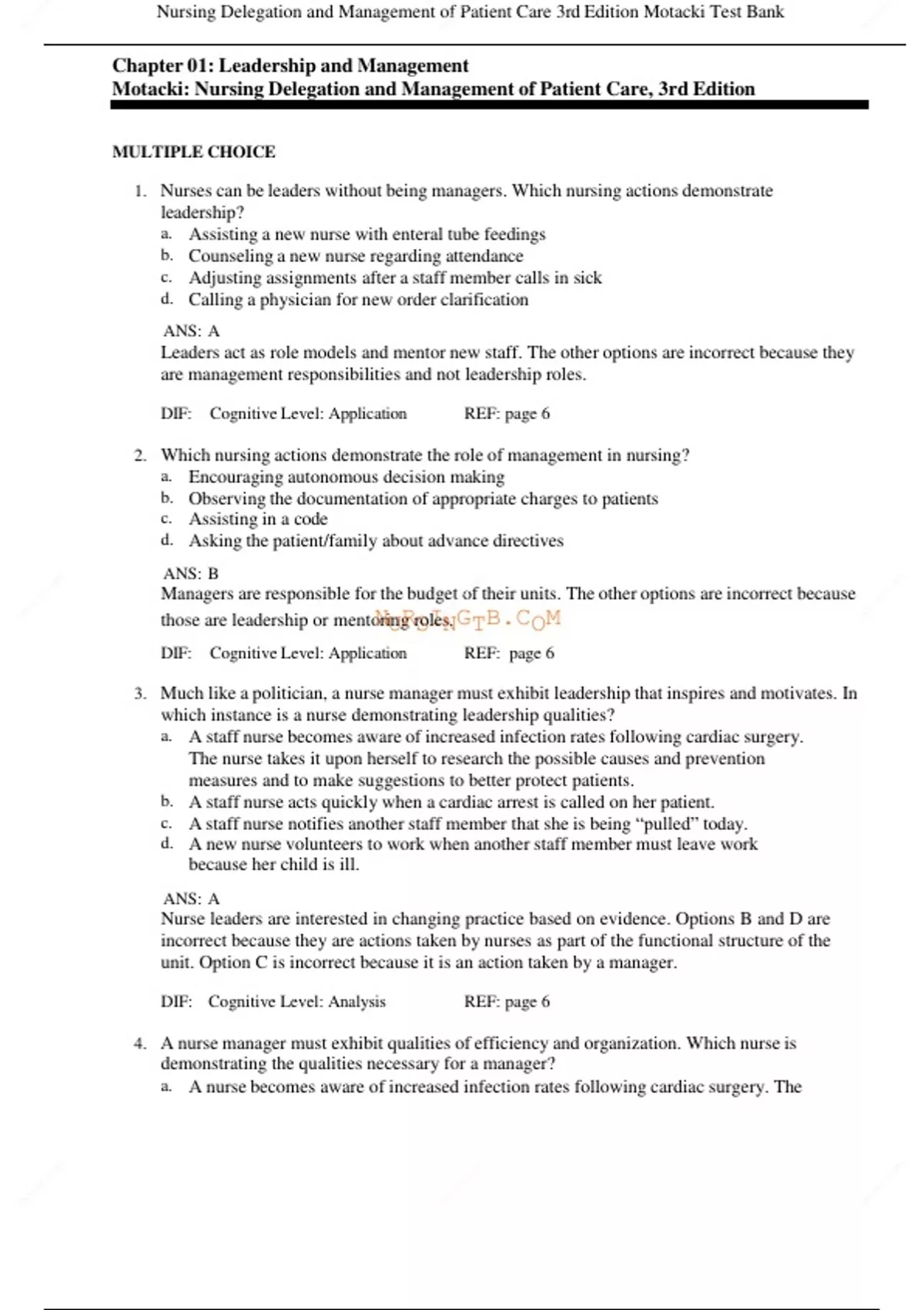 Nursing Delegation and Management of Patient Care 3rd Edition Motacki Test Bank