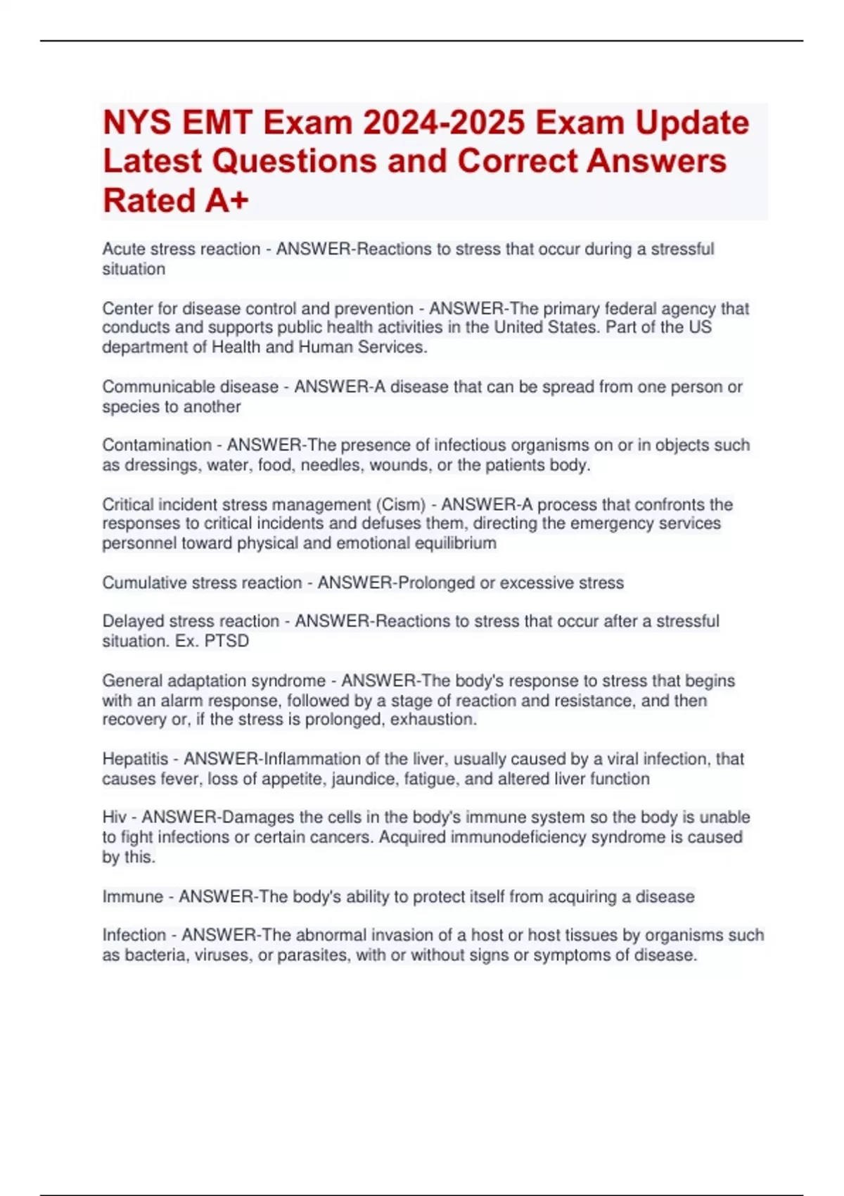 NYS EMT Exam Exam Update Latest Questions and Correct Answers Rated A+