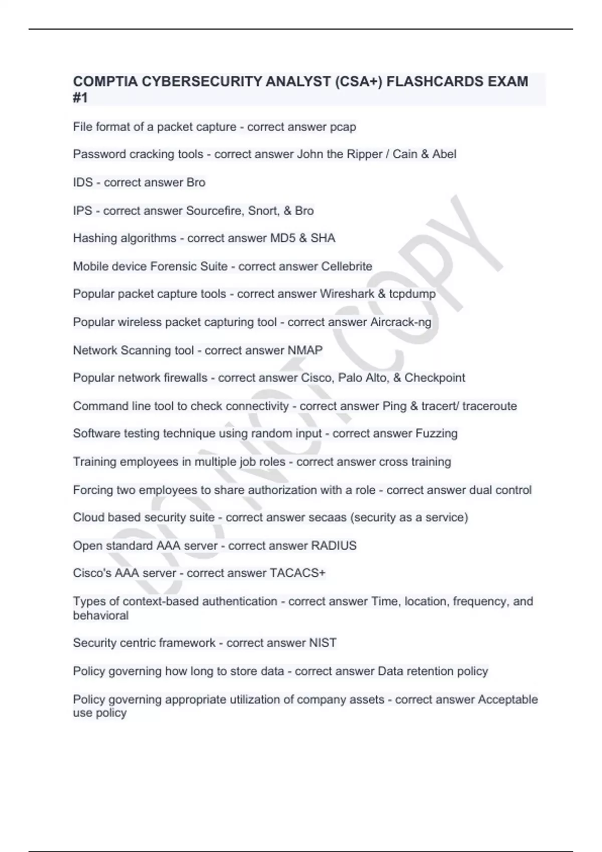 COMPTIA CYBERSECURITY ANALYST (CSA+) FLASHCARDS EXAM #1.