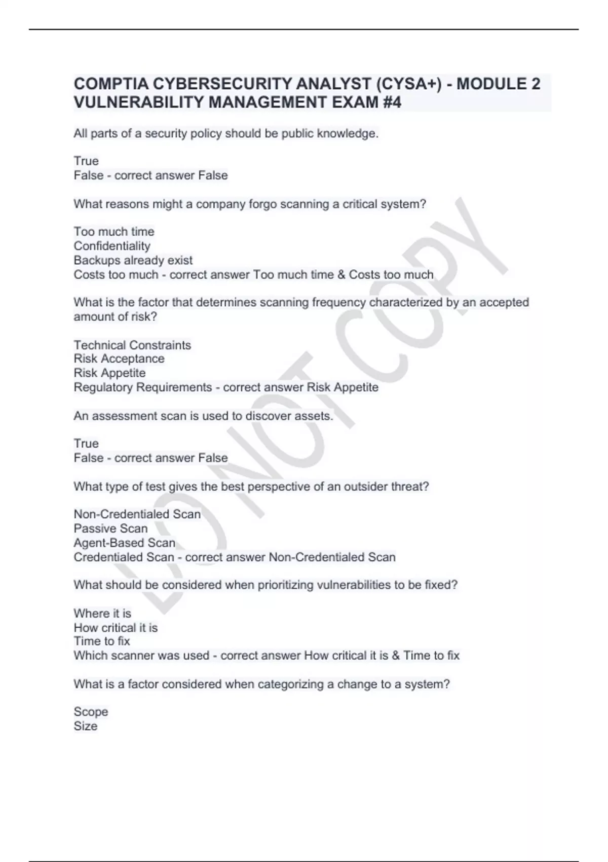COMPTIA CYBERSECURITY ANALYST (CYSA+) - MODULE 2 VULNERABILITY MANAGEMENT EXAM #4