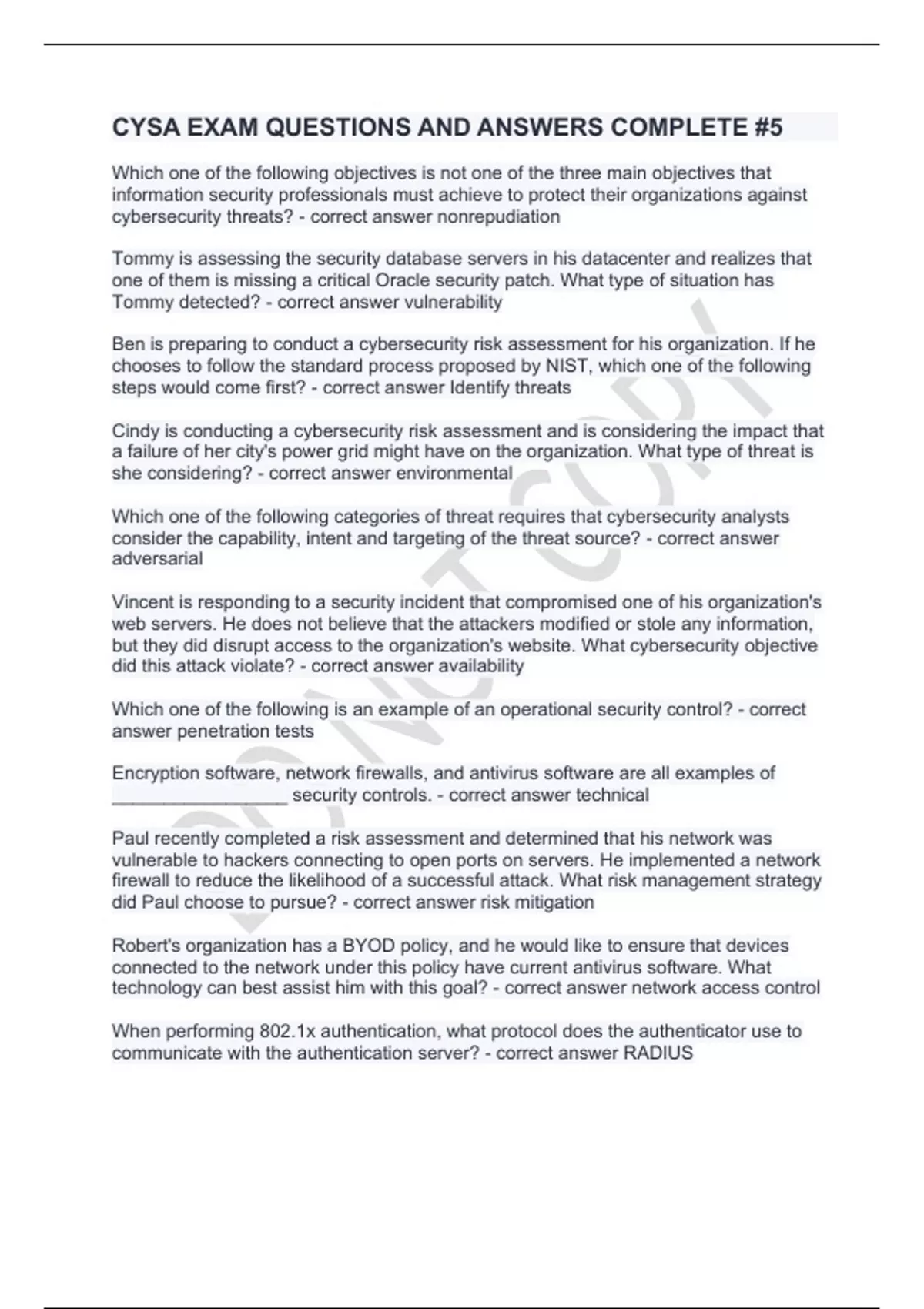 cysa exam questions and answers complete 5