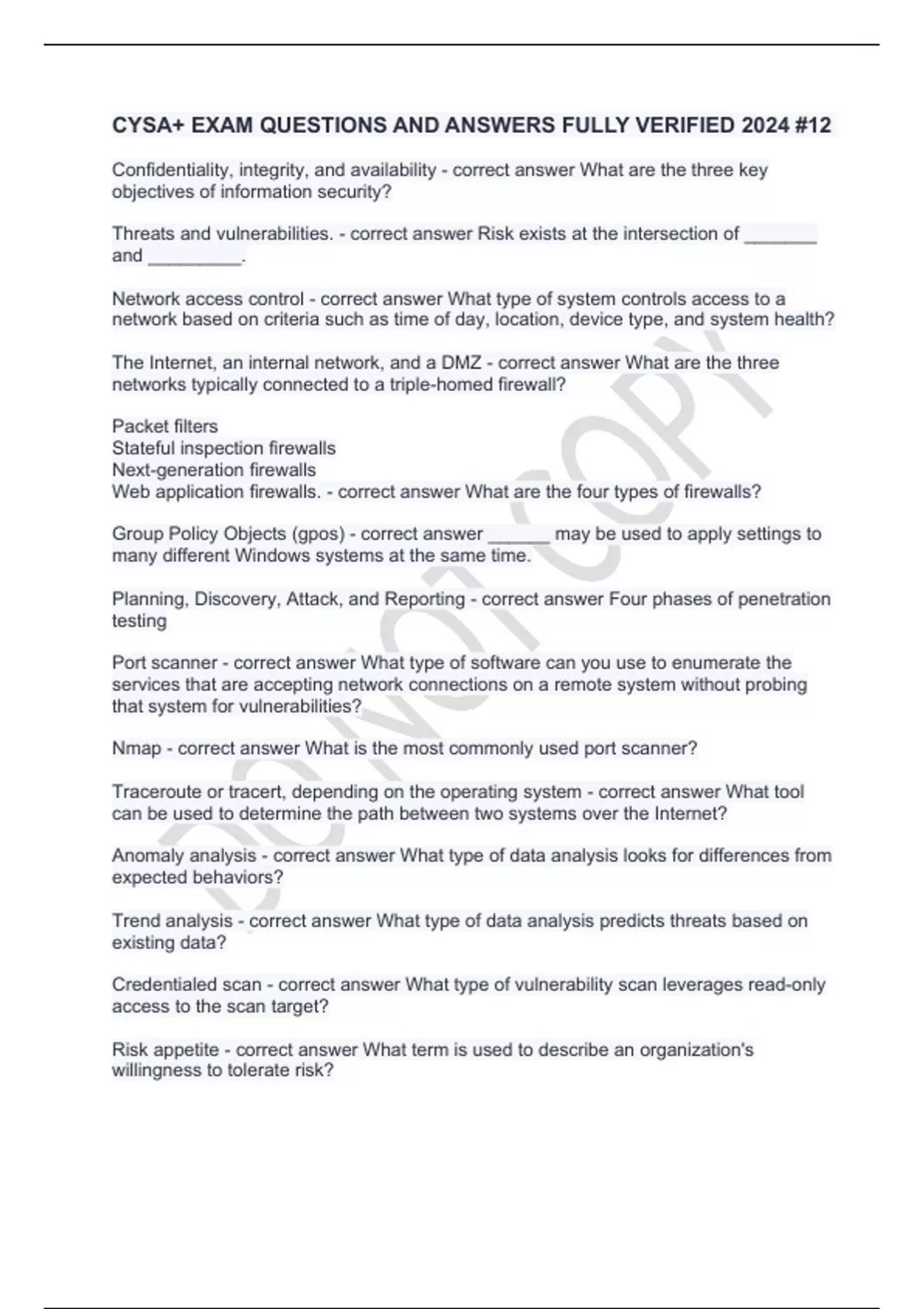 cysa exam questions and answers fully verified 20