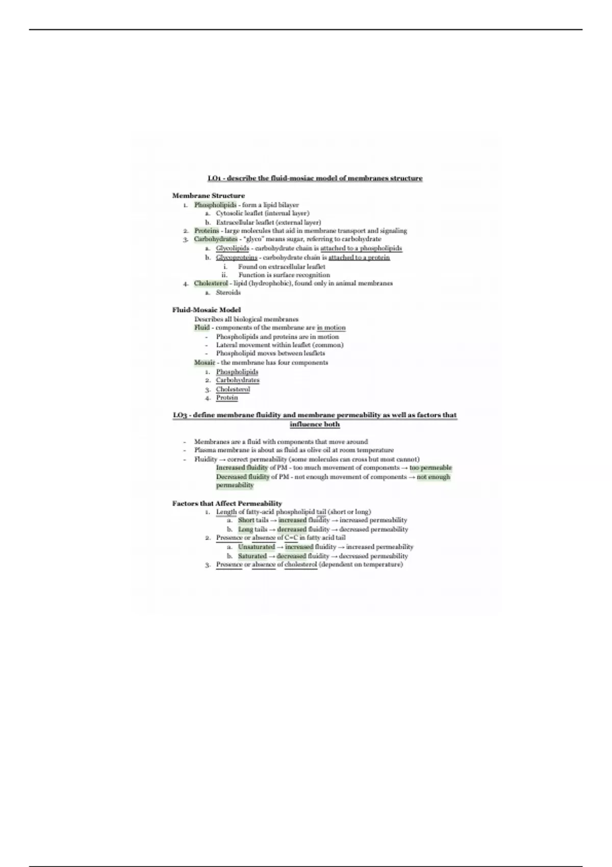 This is a comprehensive and detailed note for Bio 181 with emphasis on fluid, mosaic model+ fluidity.