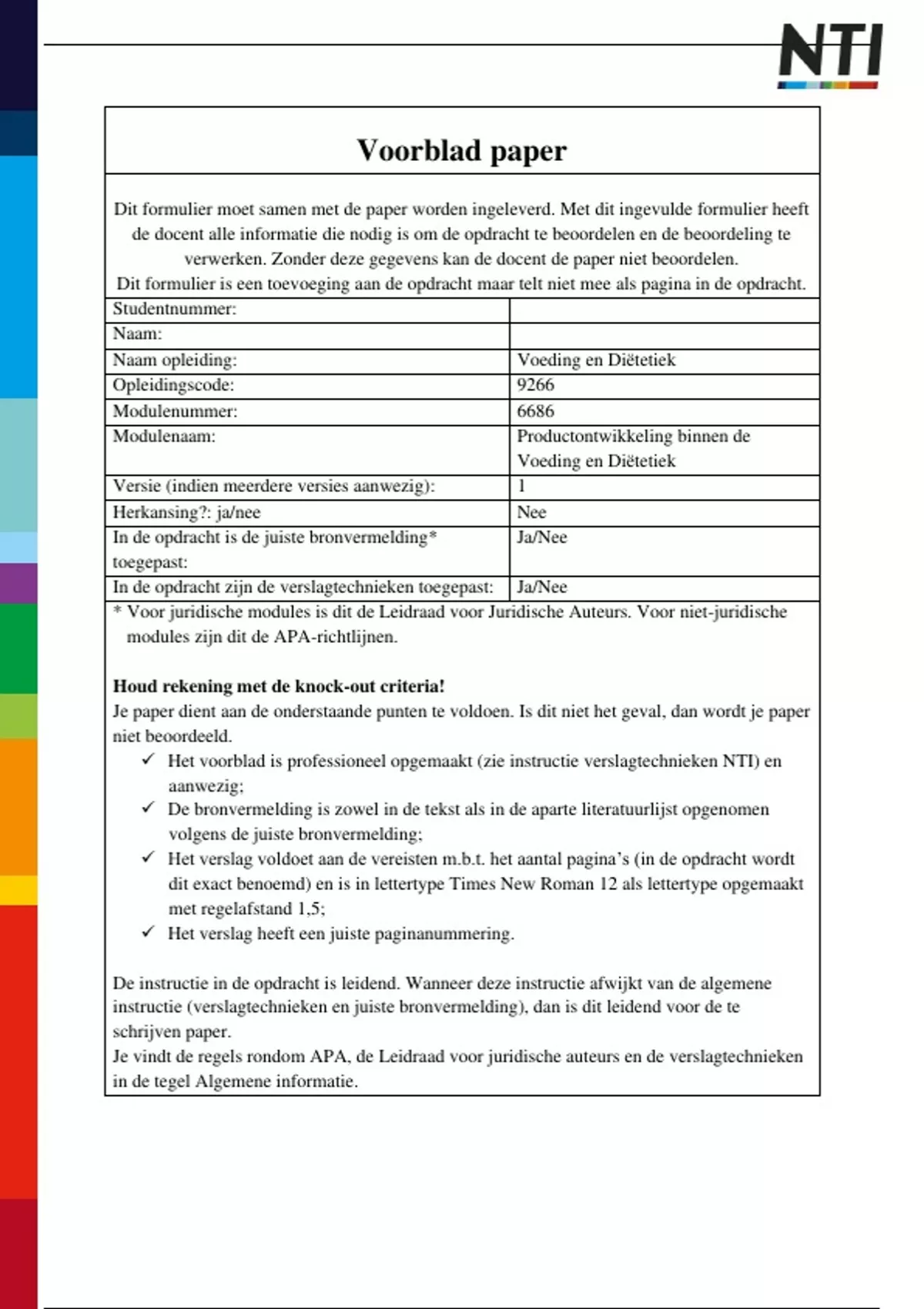 verwerken. Zonder deze gegevens kan de docent de paper niet beoordelen.