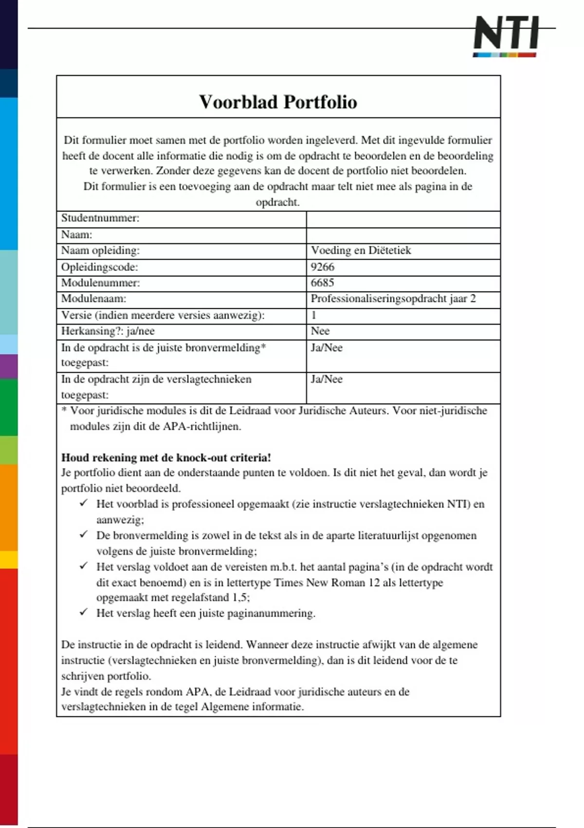 Dit formulier moet samen met de portfolio worden ingeleverd. Met dit ingevulde formulier