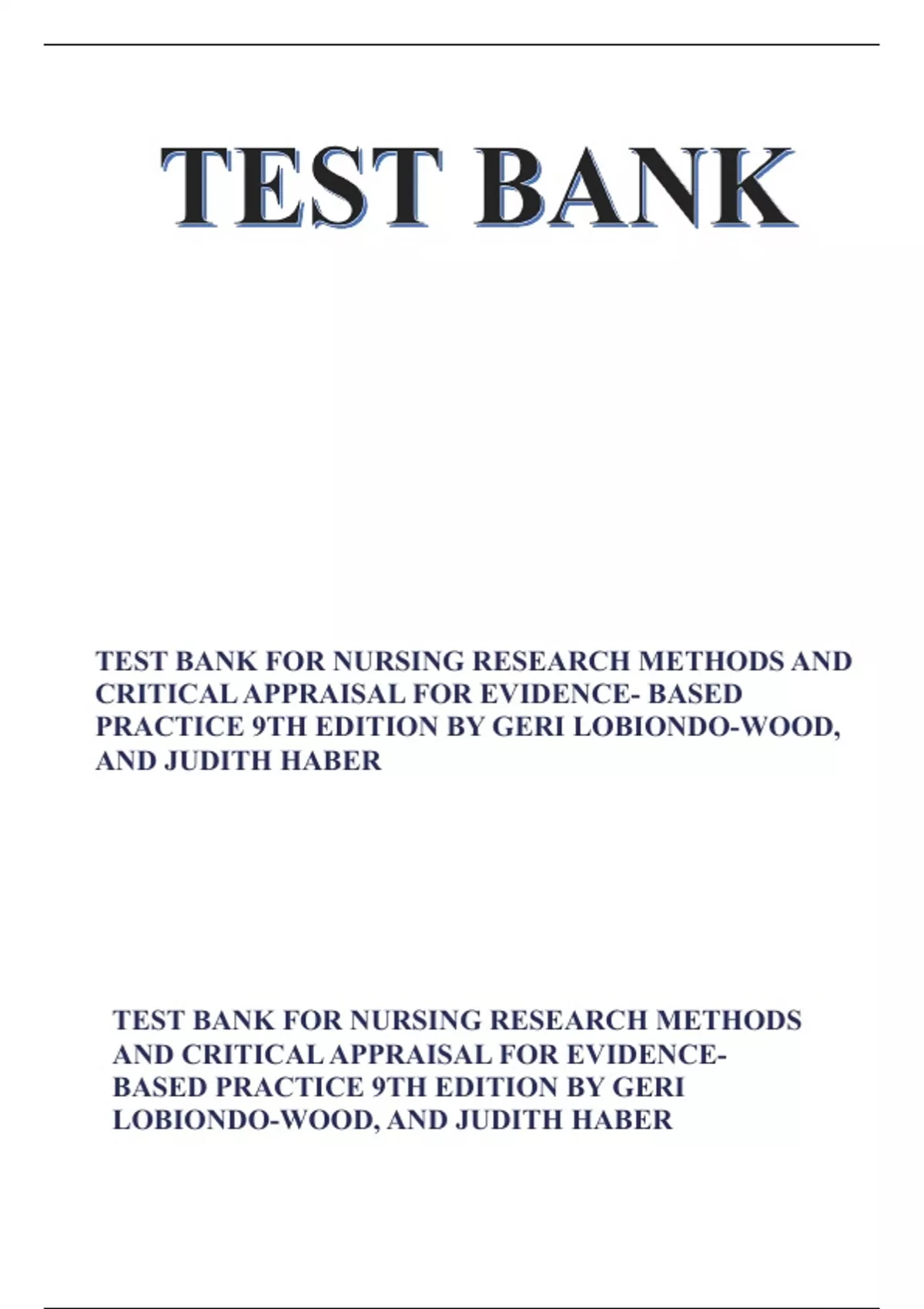 ,TEST BANK FOR NURSING RESEARCH METHODS AND CRITICAL APPRAISAL FOR EVIDENCE-
