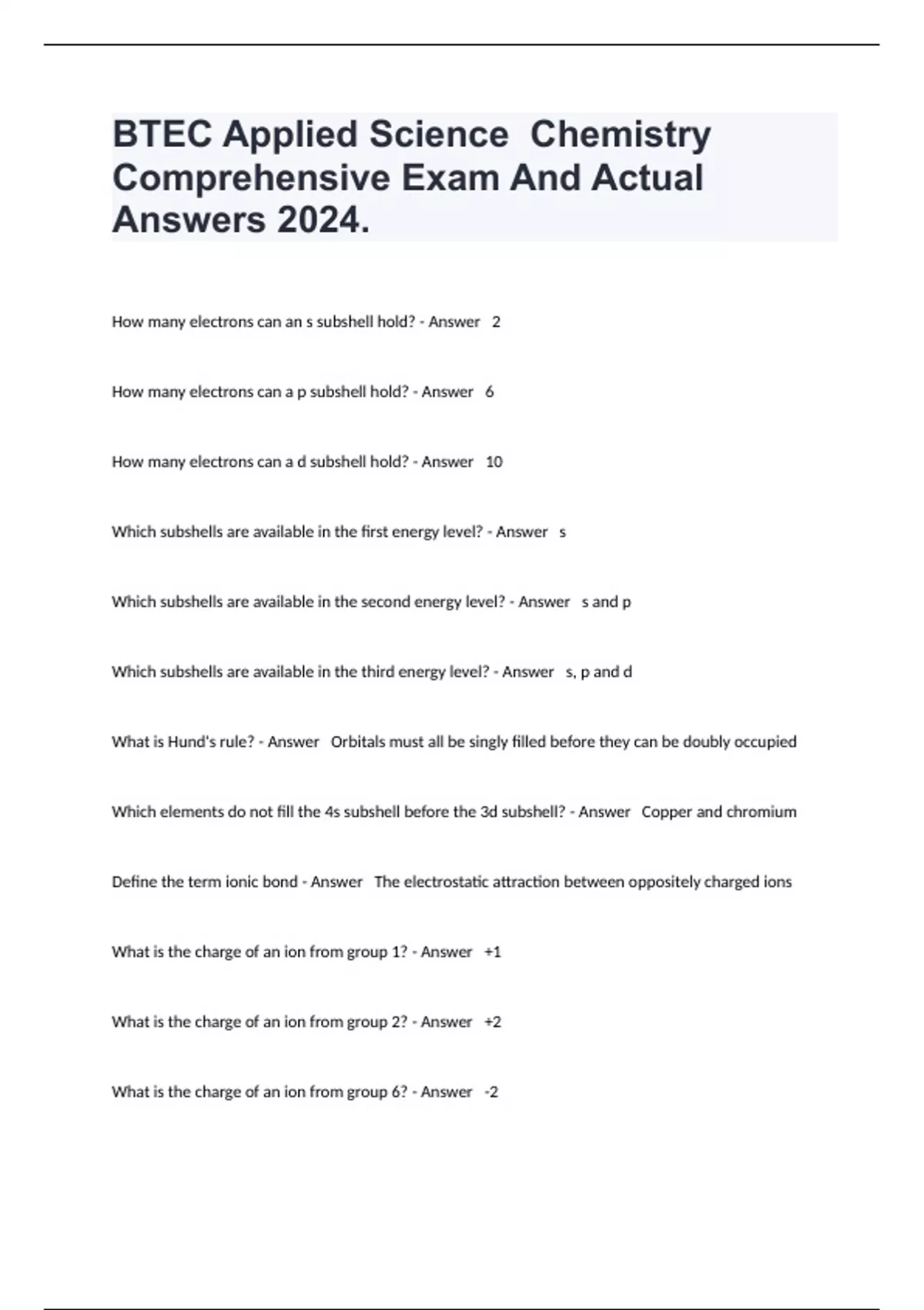 BTEC Applied Science Chemistry Comprehensive Exam And Actual Answers 2024.