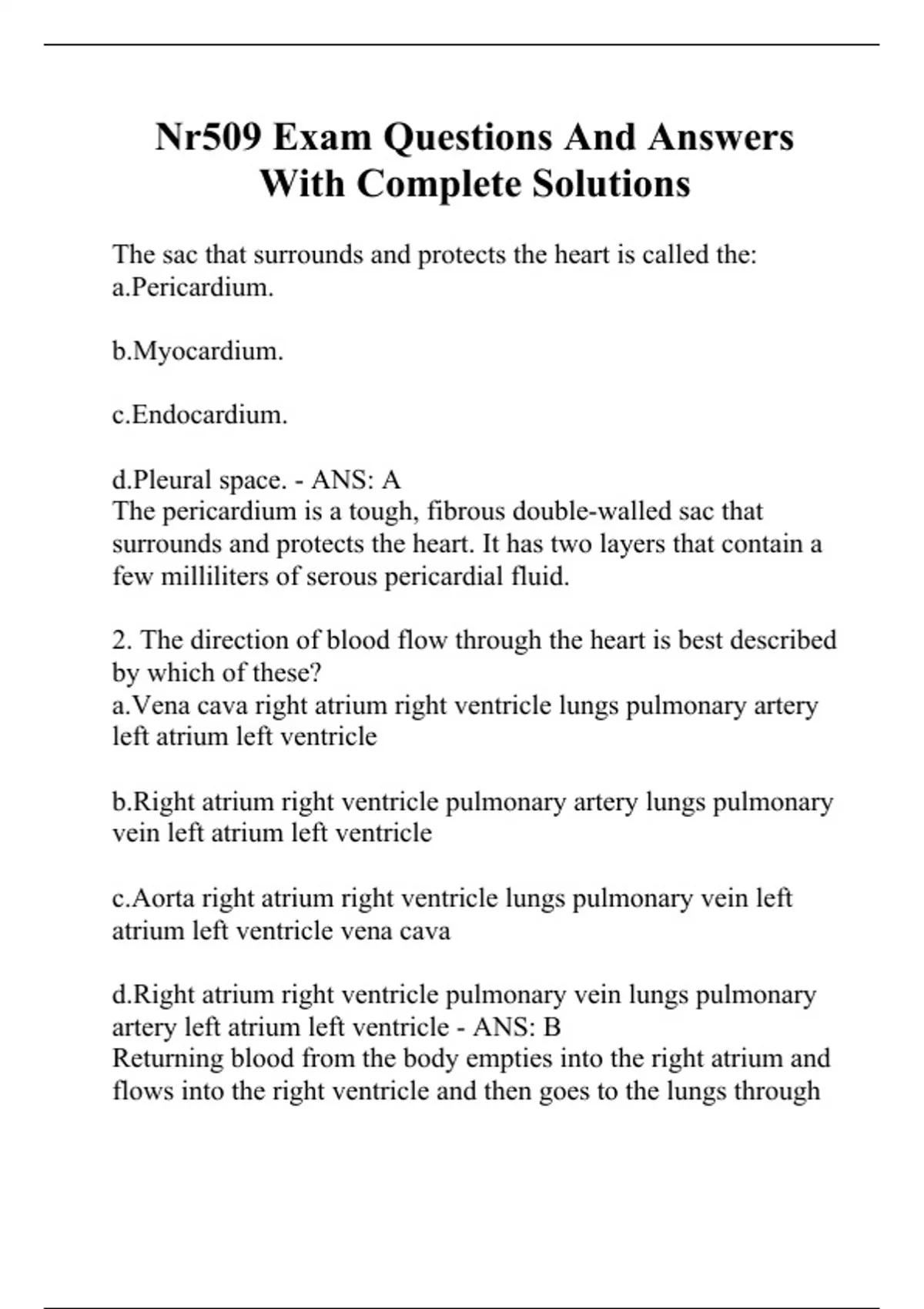 Nr509 Exam Questions And Answers With Complete Solutions Chamberlain School Of Nursing