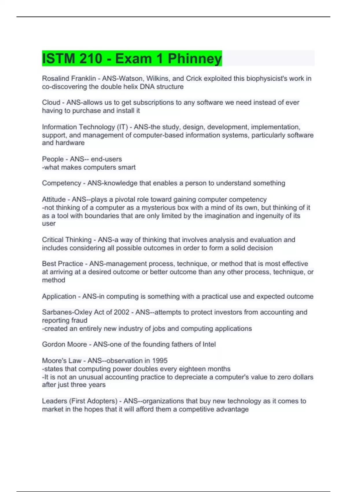 istm 210 exam 1 phinney