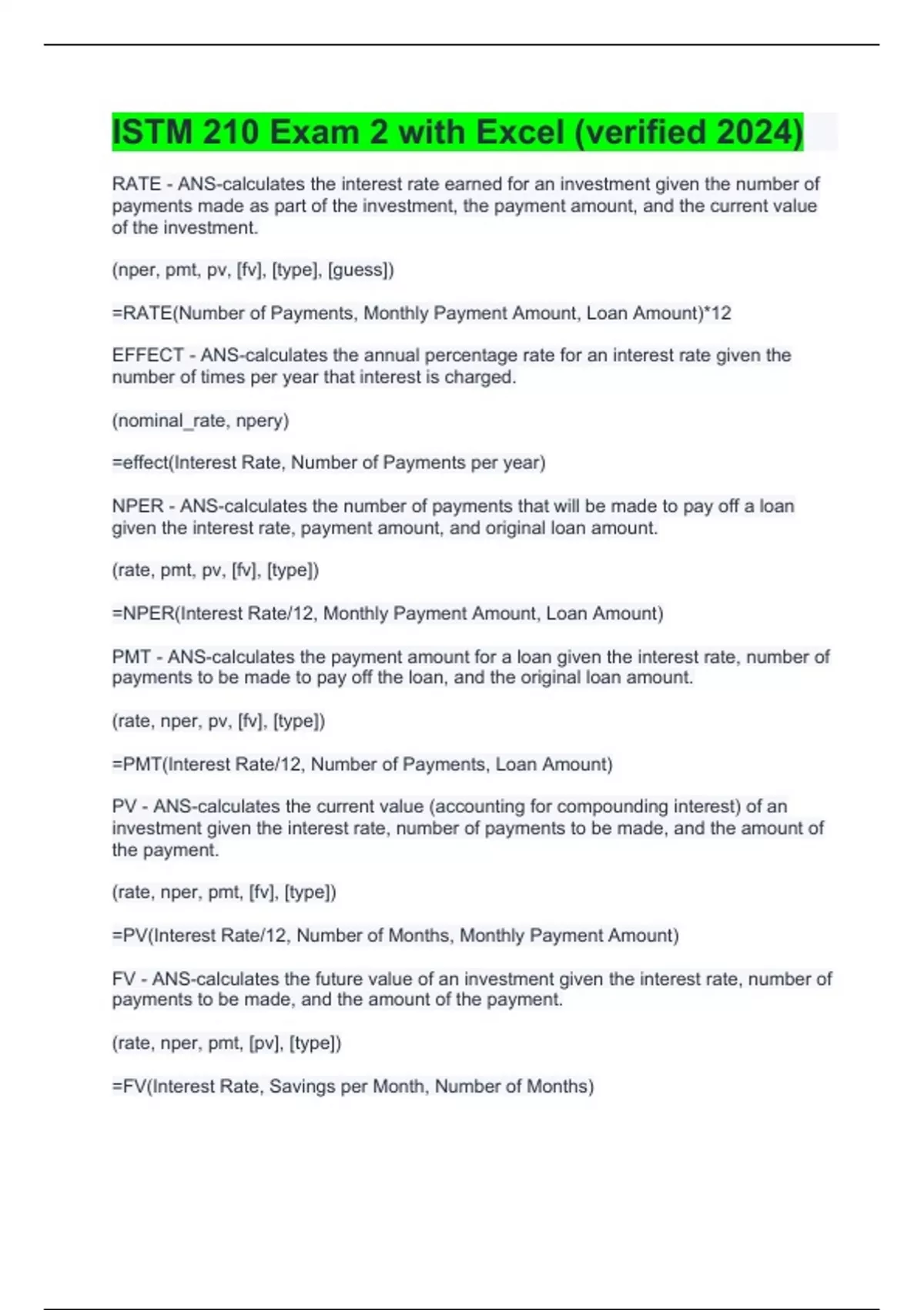 ISTM 210 Exam 2 with Excel (verified 2024)