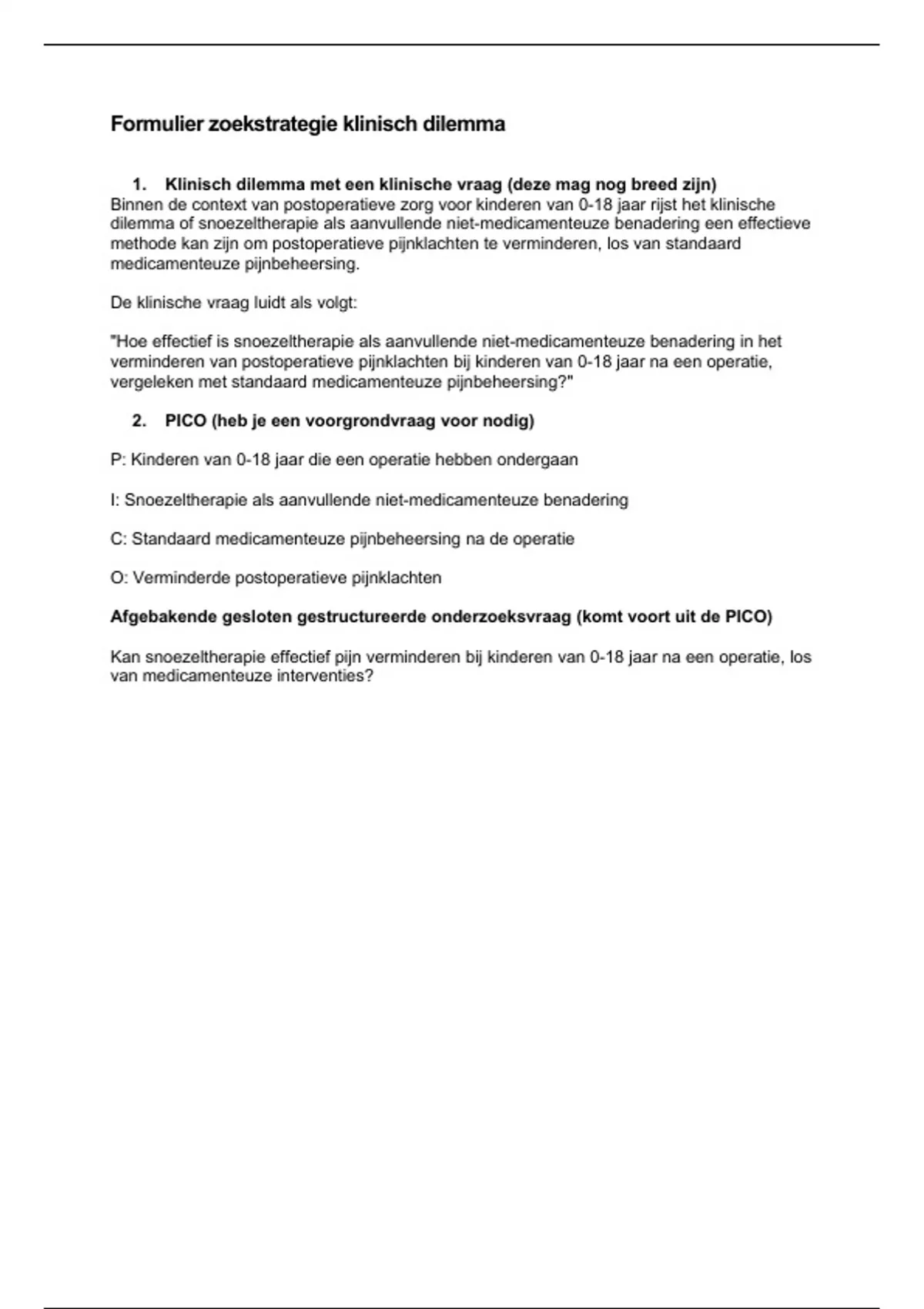 1. Klinisch dilemma met een klinische vraag (deze mag nog breed zijn)