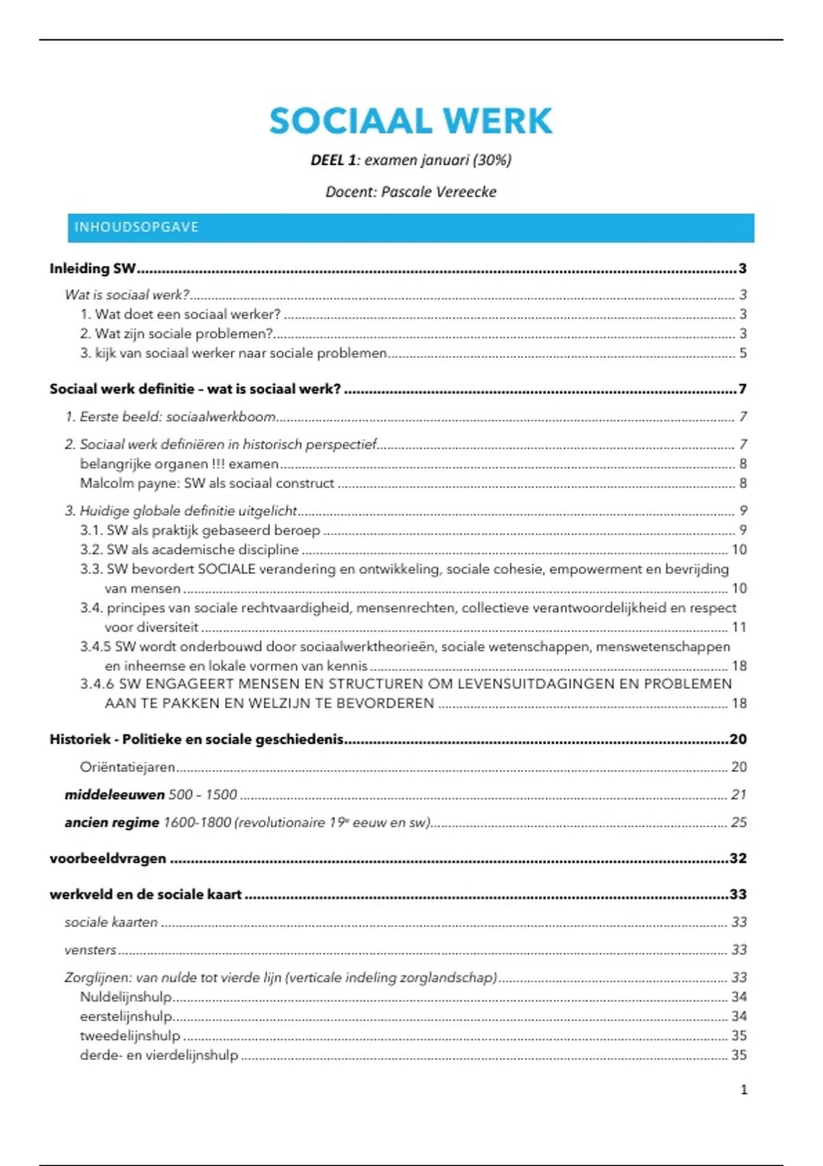 Dit is een samenvatting van het vak sociaal werk uit het eerste jaar. Dit gaat over het eerste deel dat op 30% staat.