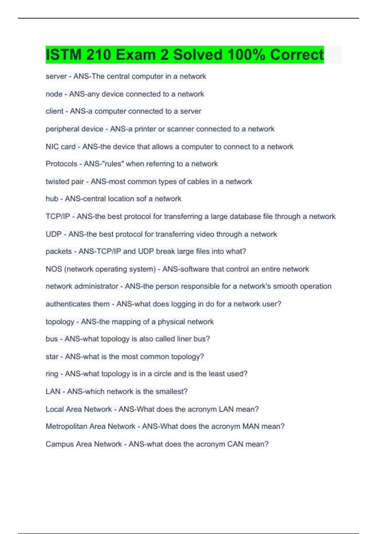istm 210 exam 2 solved 100 correct