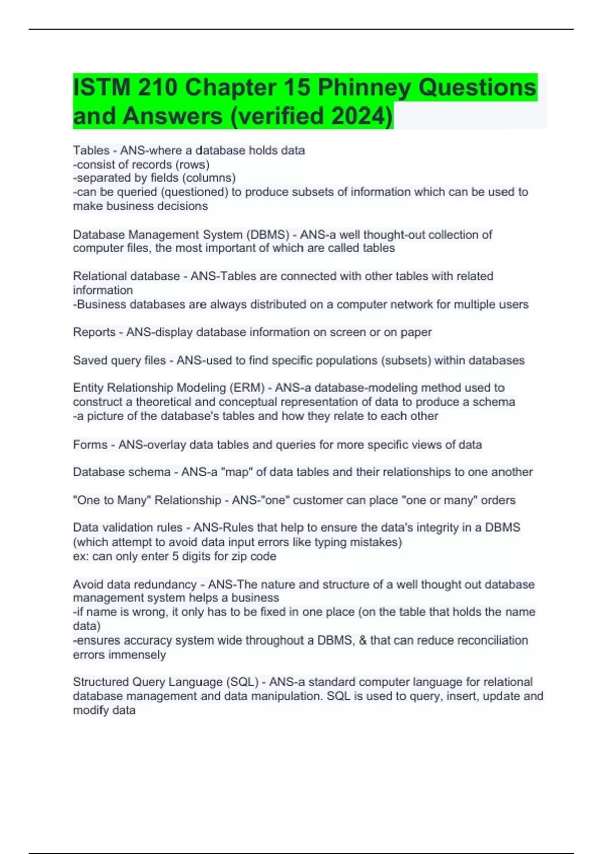ISTM 210 Chapter 15 Phinney Questions and Answers (verified 2024)