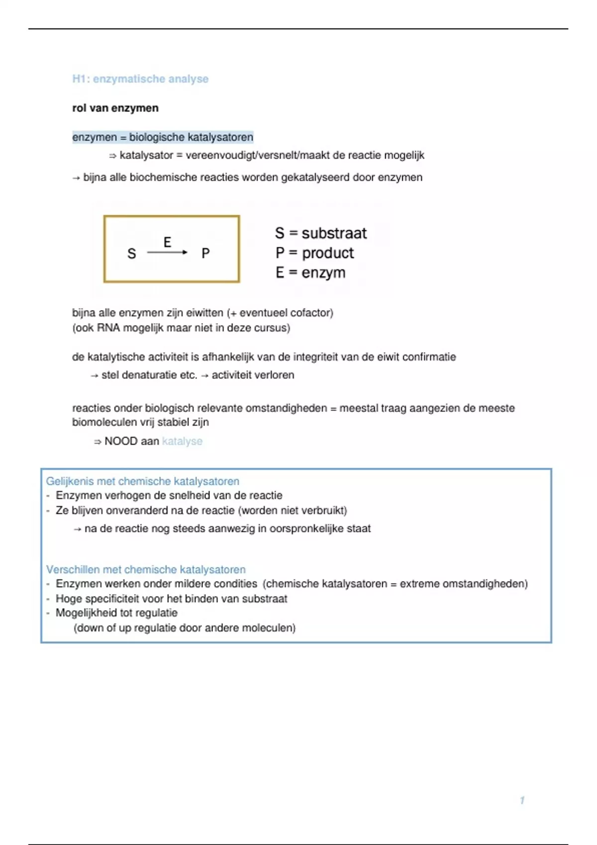 → bijna alle biochemische reacties worden gekatalyseerd door enzymen