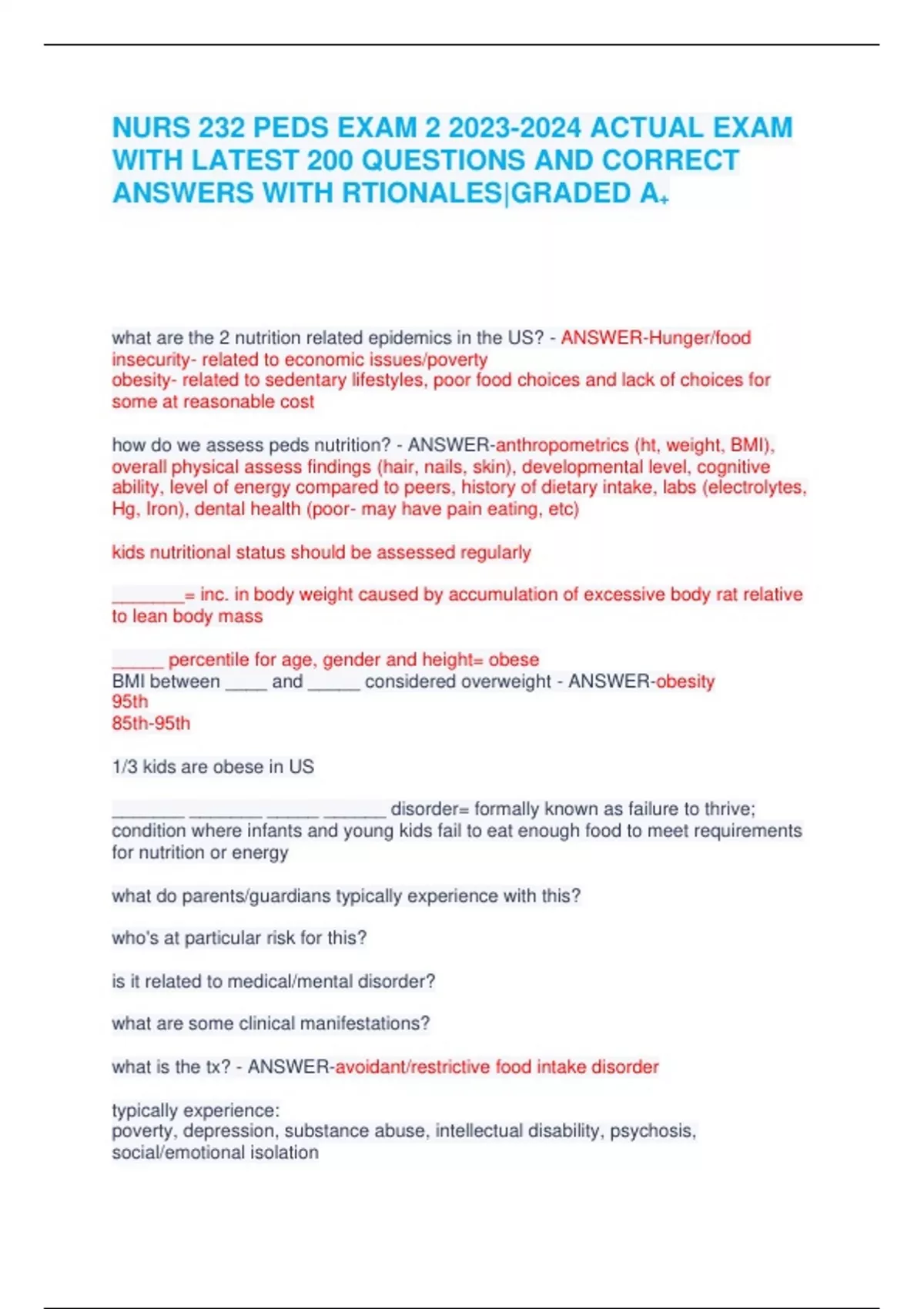 nurs 232 peds exam 4 latest actual exam 2023 202