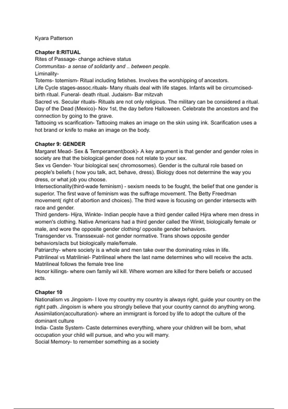 A well in depth notes of the class anthropology and a few study guides to help students with the course. Also a essay needed for the class to help get a better grasp of what to write about.