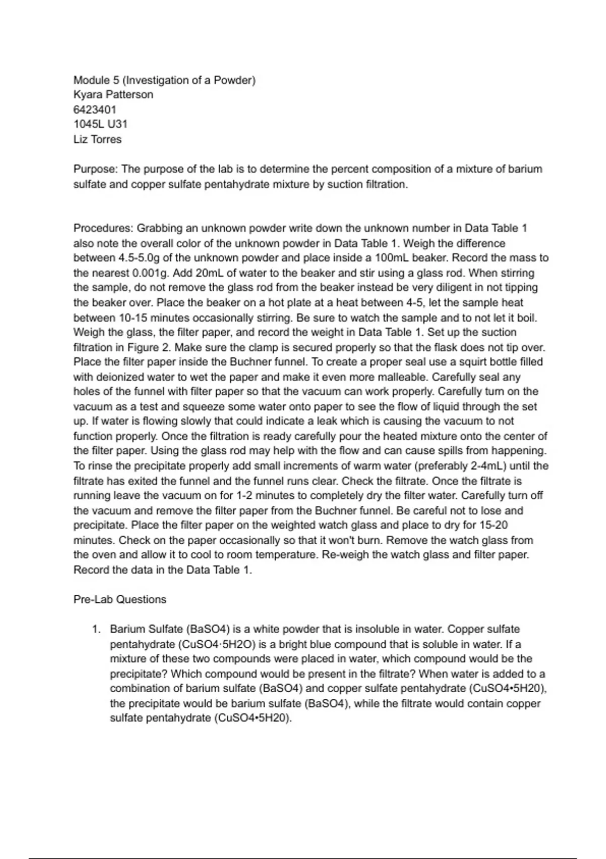 Pre-Labs for CHM1045L