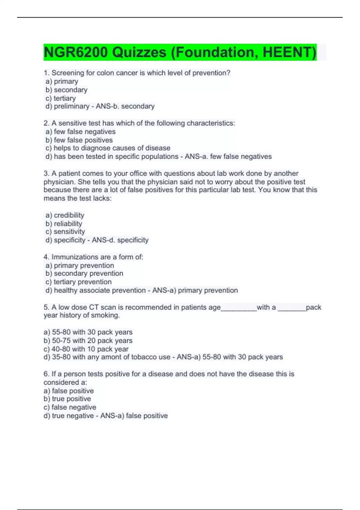 ngr6200 quizzes with complete solutions