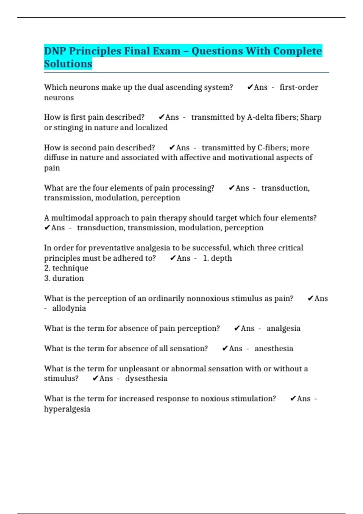 dnp principles final exam questions with complet