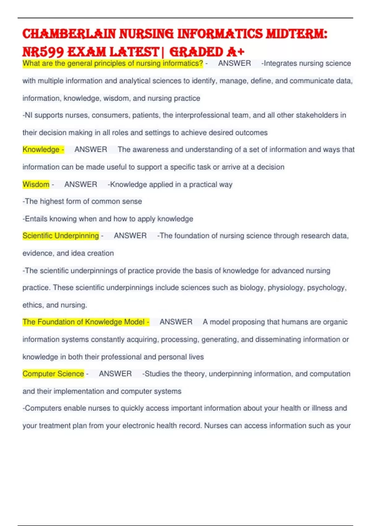 CHAMBERLAIN NuRsINg INfoRMAtICs MIdtERM: NR599 EXAM LAtEst| gRAdEd A+
