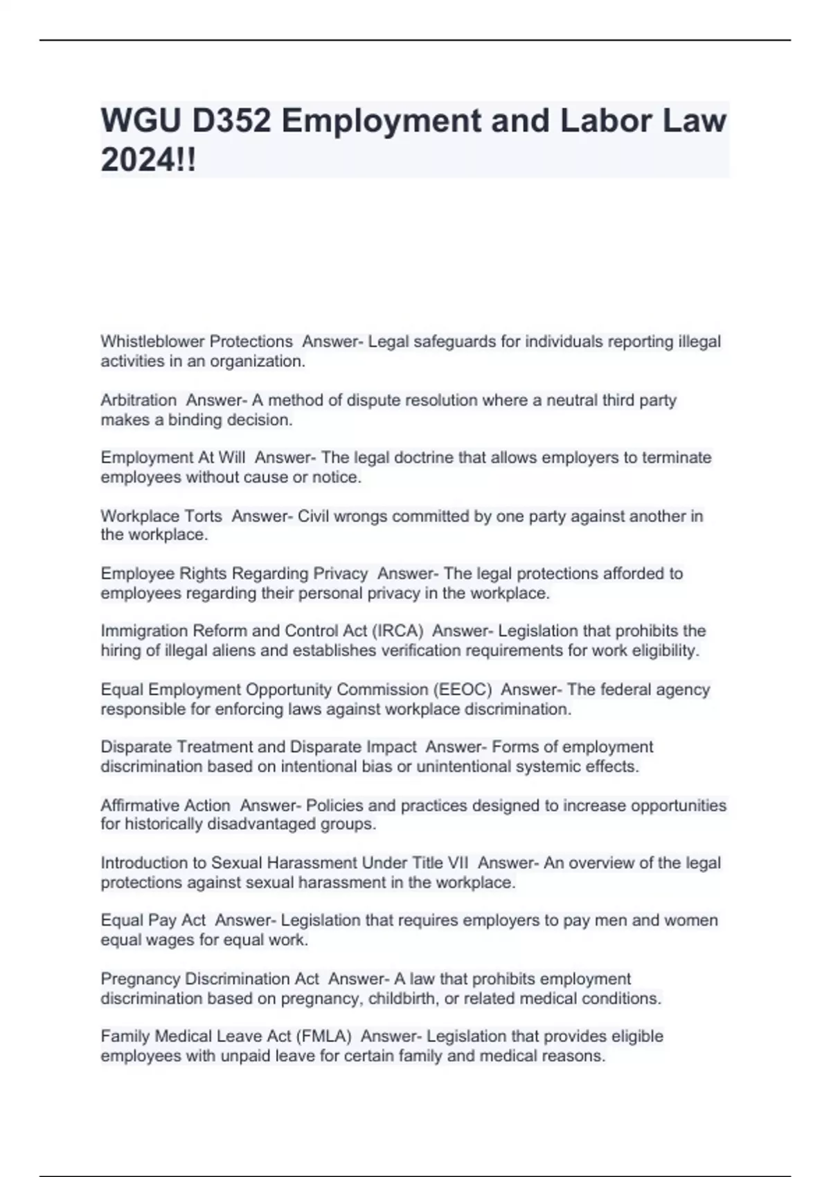 Age Discrimination in Employment Act (ADEA) Answer- Legislation that prohibits