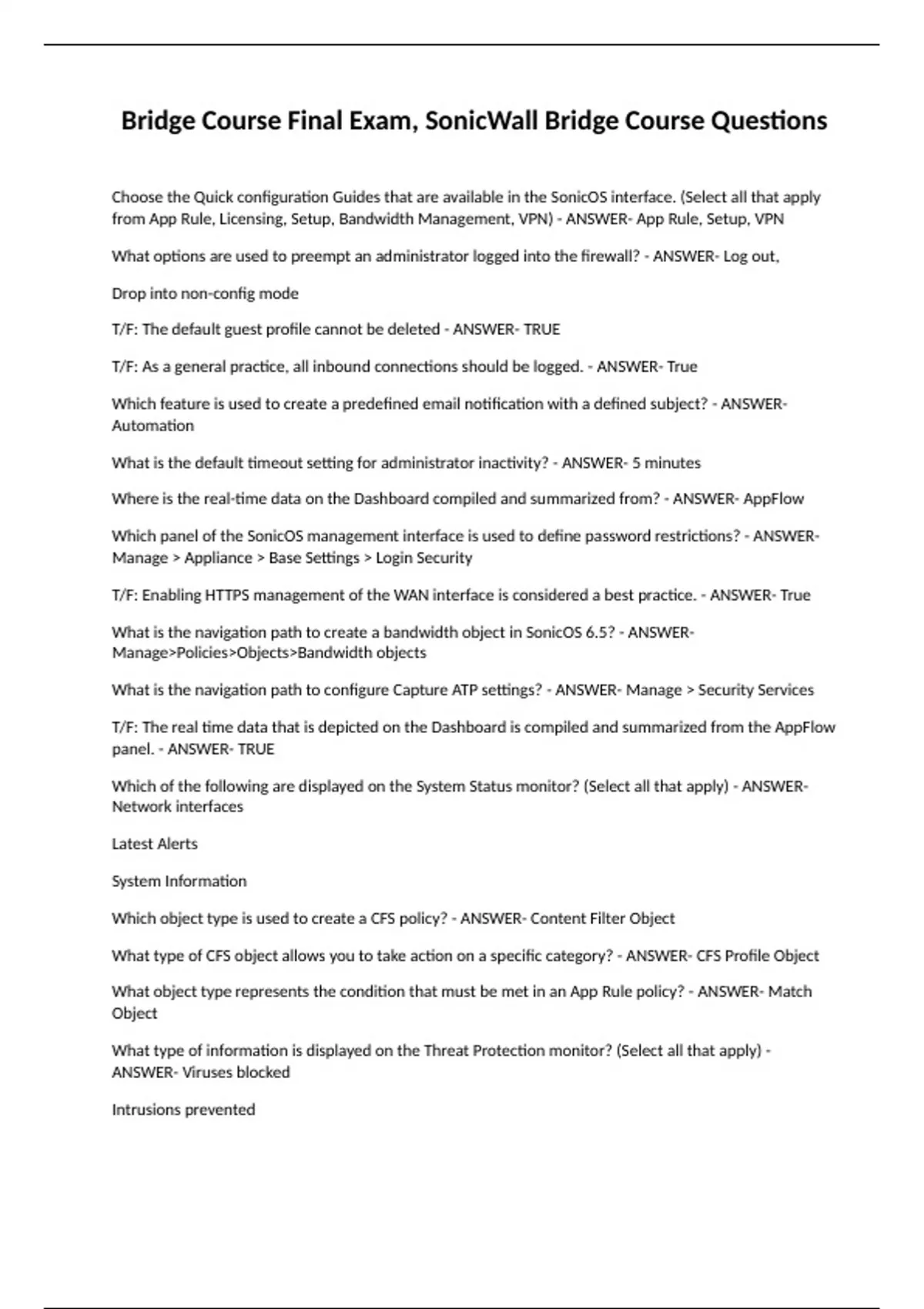Bridge Course Final Exam, SonicWall Bridge Course Questions