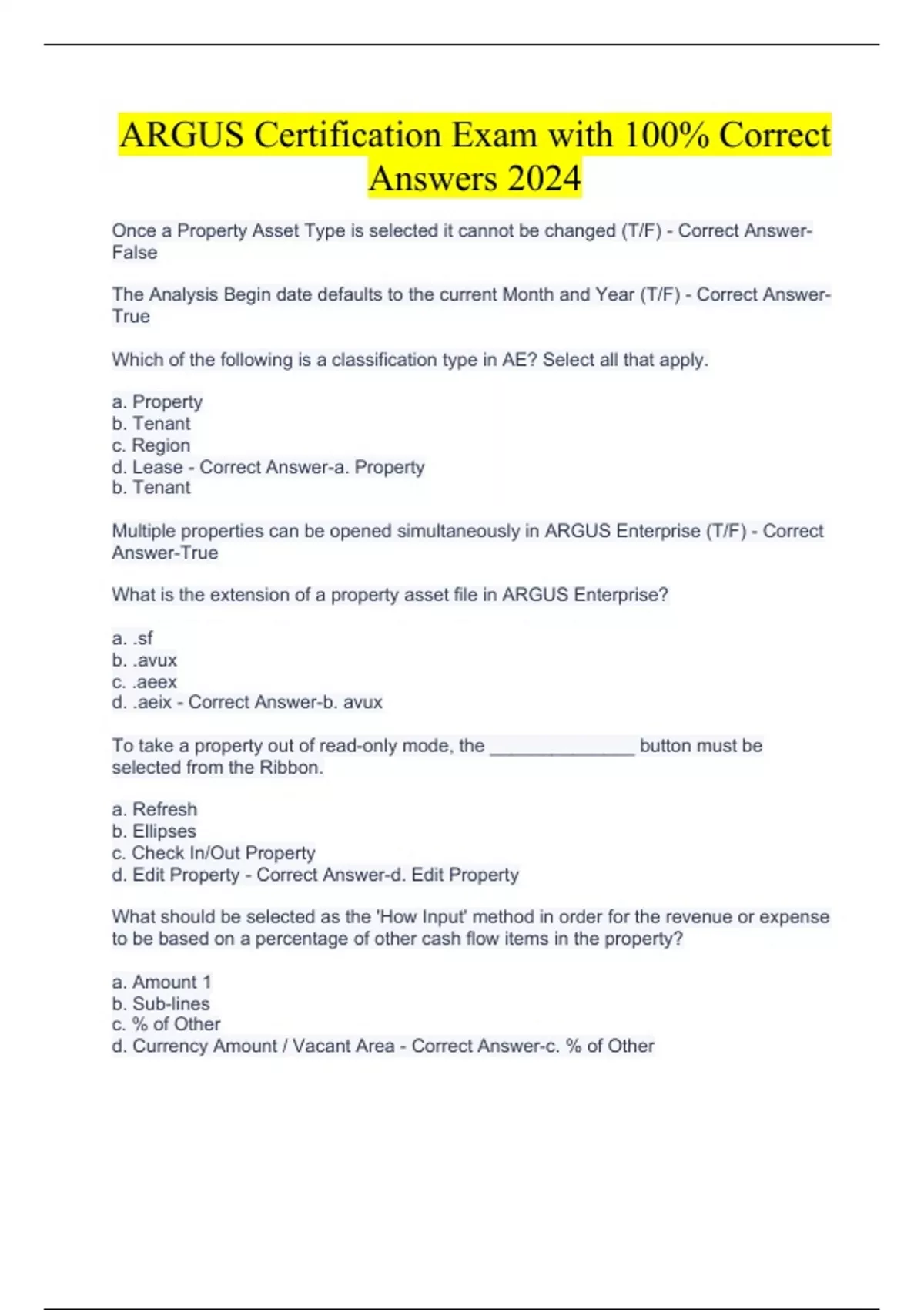 ARGUS Certification Exam with 100% Correct Answers 2024