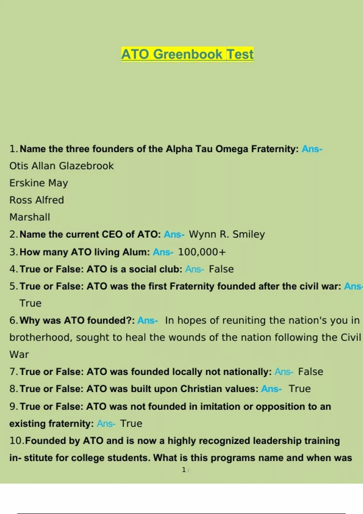 ATO Greenbook Test Questions and Answers Complete
