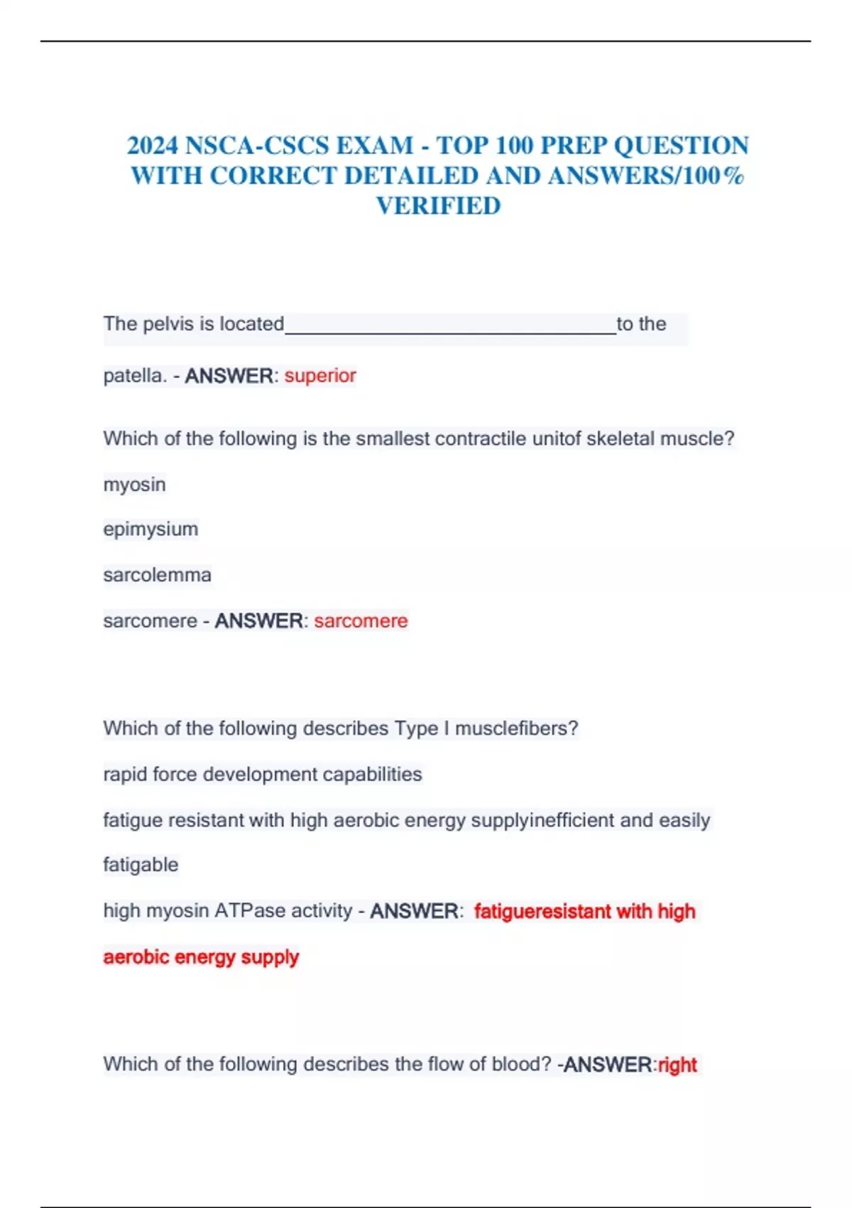 2024 NSCA-CSCS EXAM - TOP 100 PREP QUESTION WITH CORRECT DETAILED AND ANSWERS/100% VERIFIED