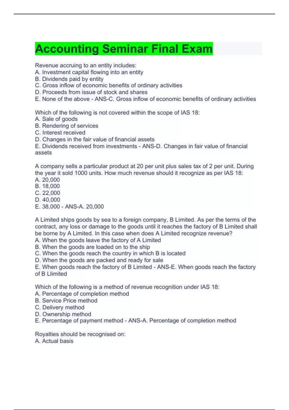 Accounting Seminar Final Exam