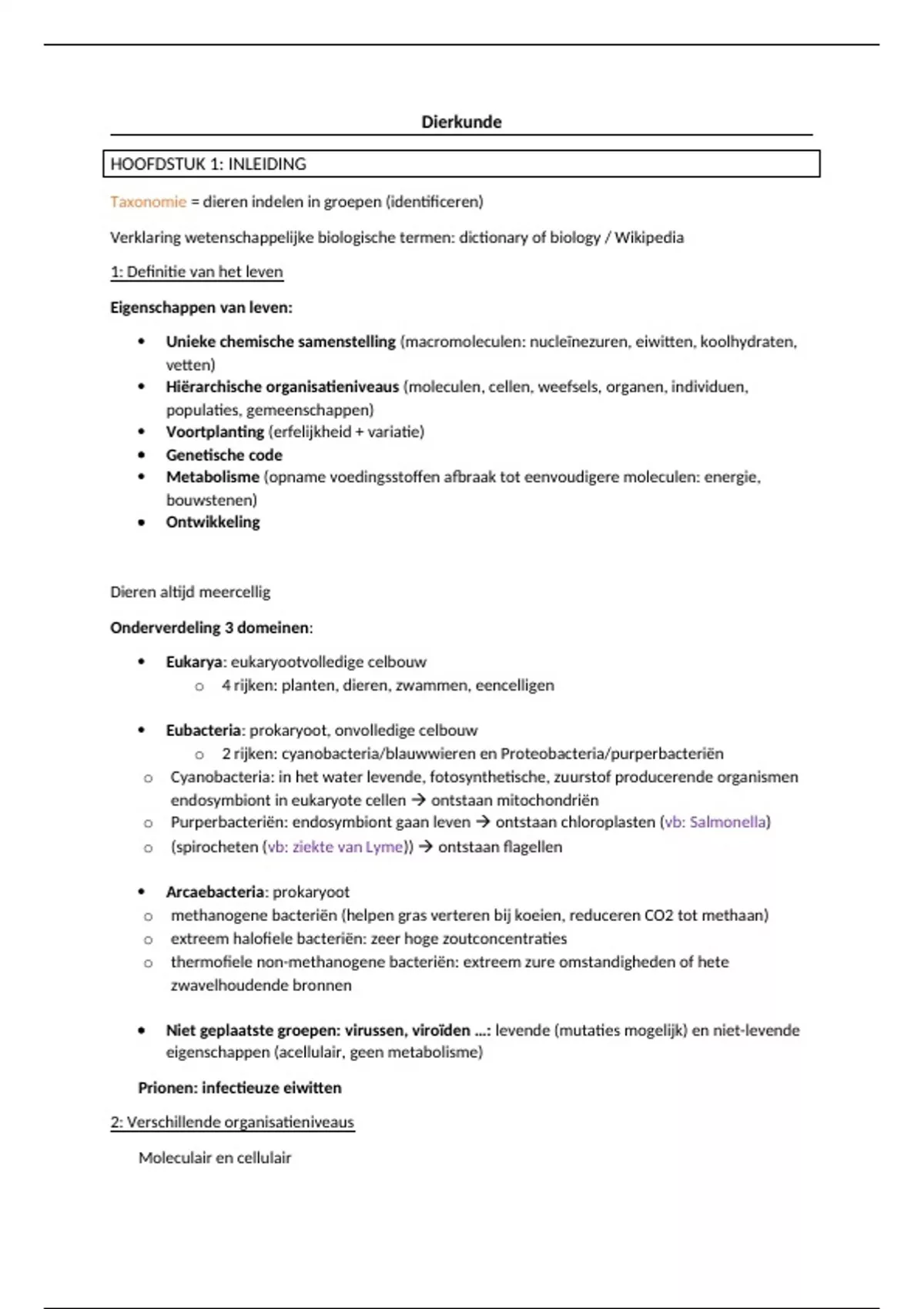 Samenvatting dierkunde Biomedische wetenschappen 1e bachelor, 1e semester