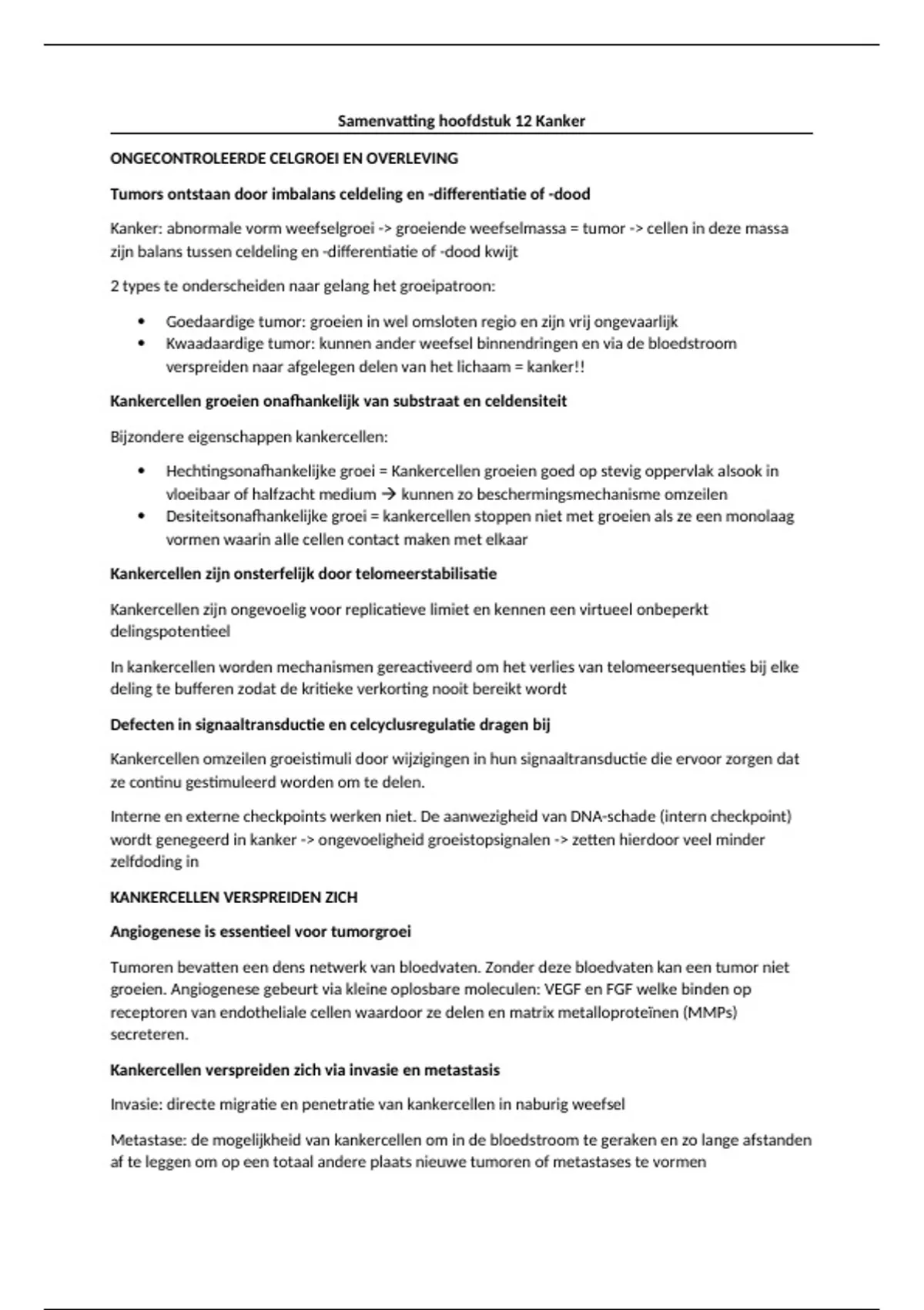 Kanker: abnormale vorm weefselgroei -> groeiende weefselmassa = tumor -> cellen in deze massa