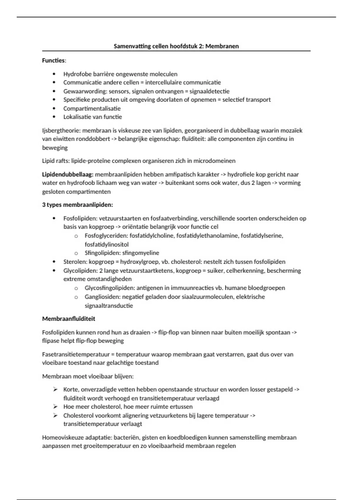 Samenvatting cellen hoofdstuk 2: Membranen