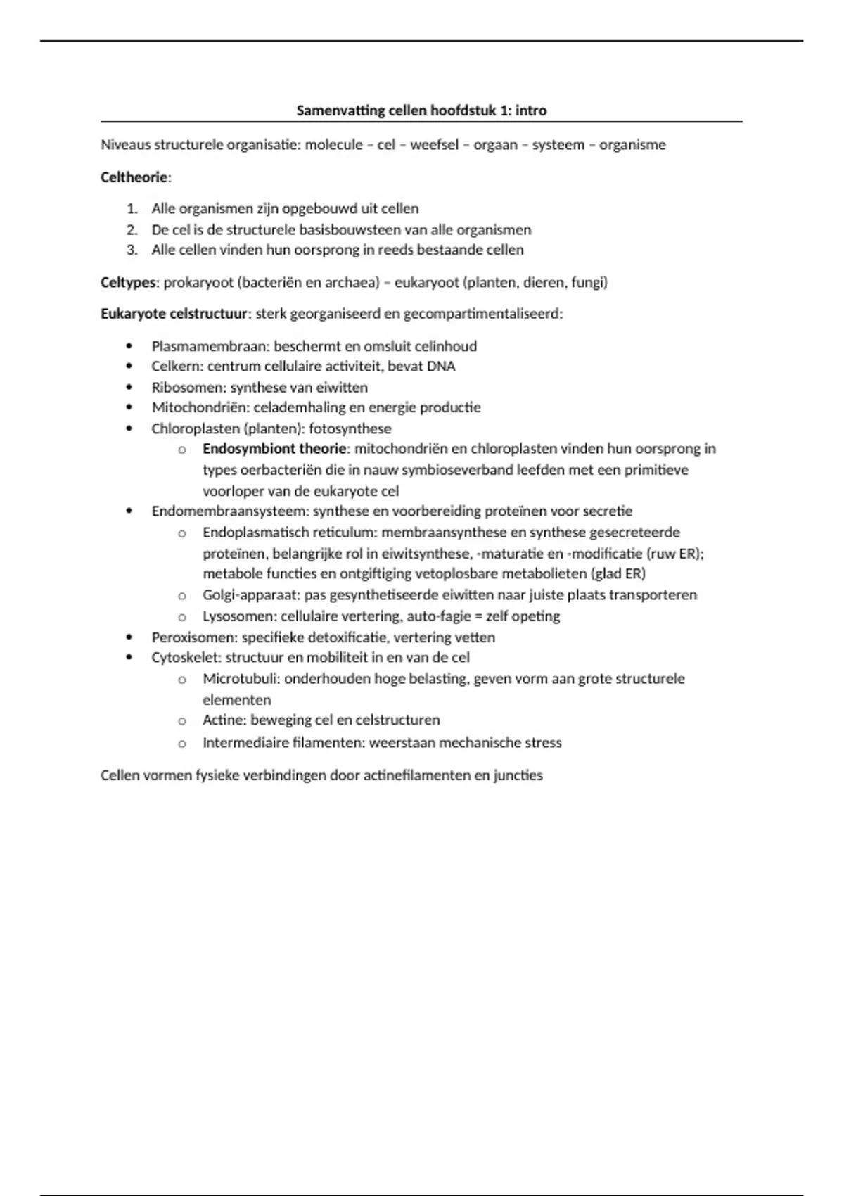 Eukaryote celstructuur: sterk georganiseerd en gecompartimentaliseerd: