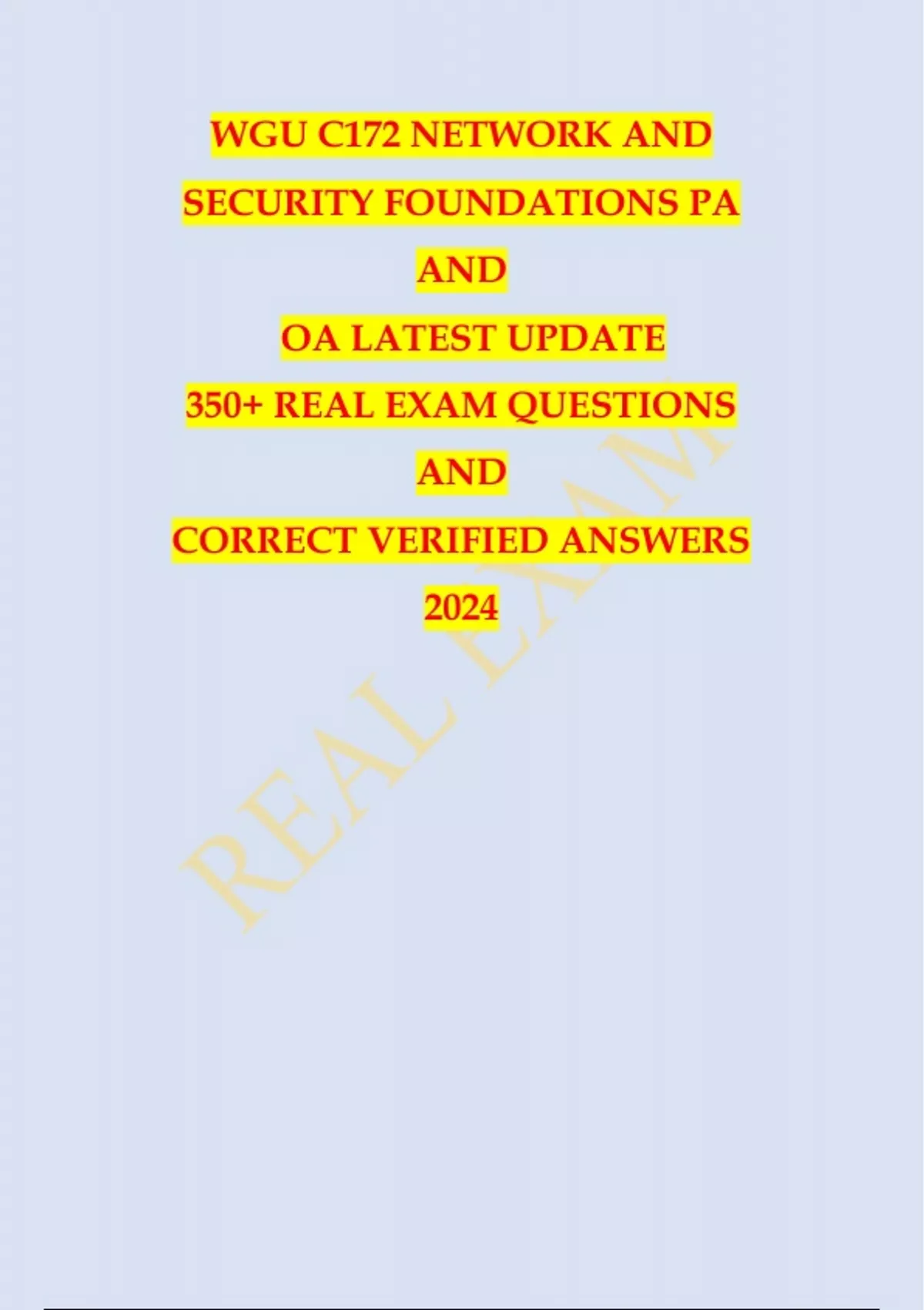 WGU C172 NETWORK AND SECURITY FOUNDATIONS PA AND OA LATEST UPDATED 350 REAL EXAM QUESTIONS WITH VERIFIED ANSWERS 2024.
