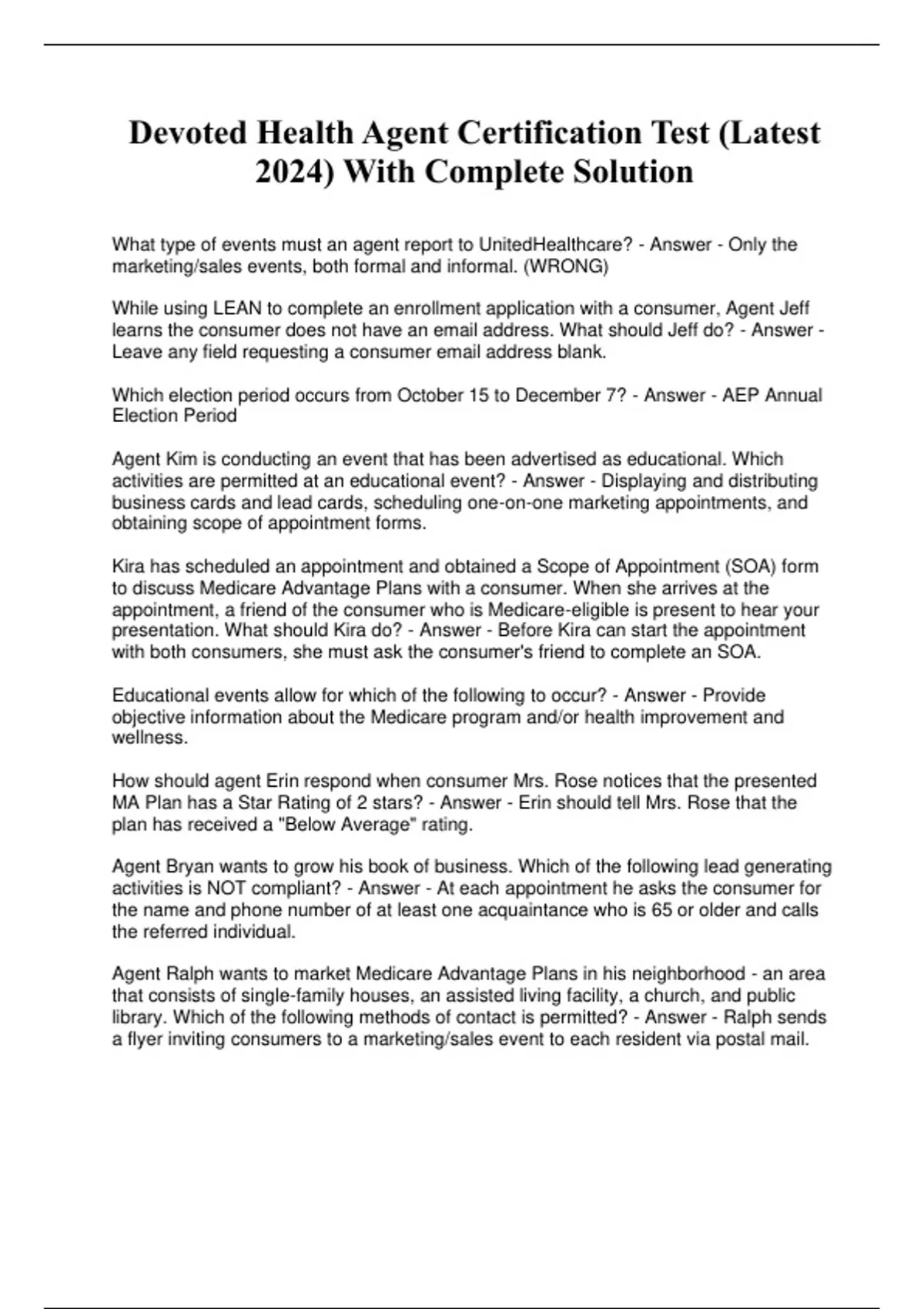 Devoted Health Agent Certification Test (Latest 2024) With Complete Solution