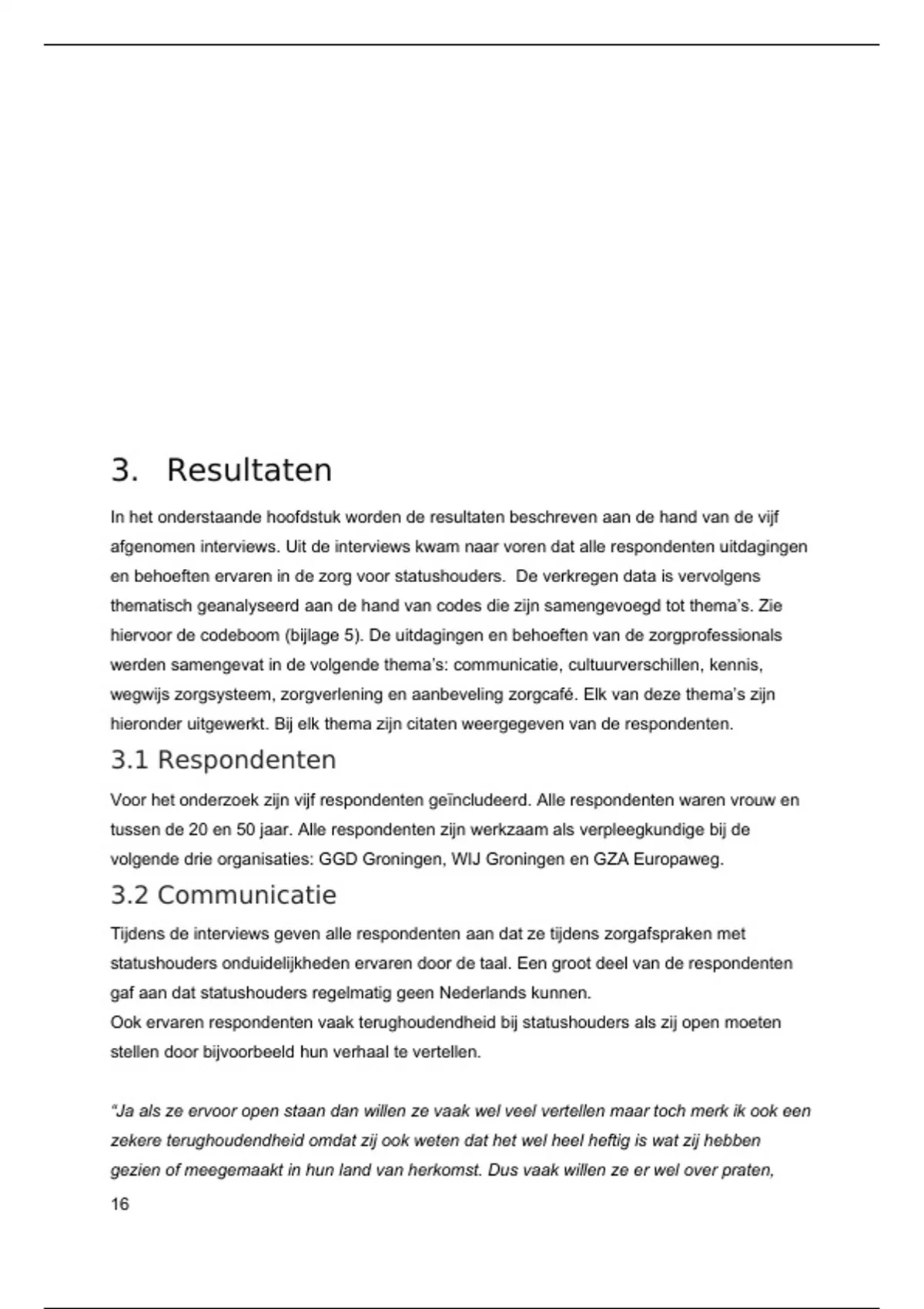 hieronder uitgewerkt. Bij elk thema zijn citaten weergegeven van de respondenten.