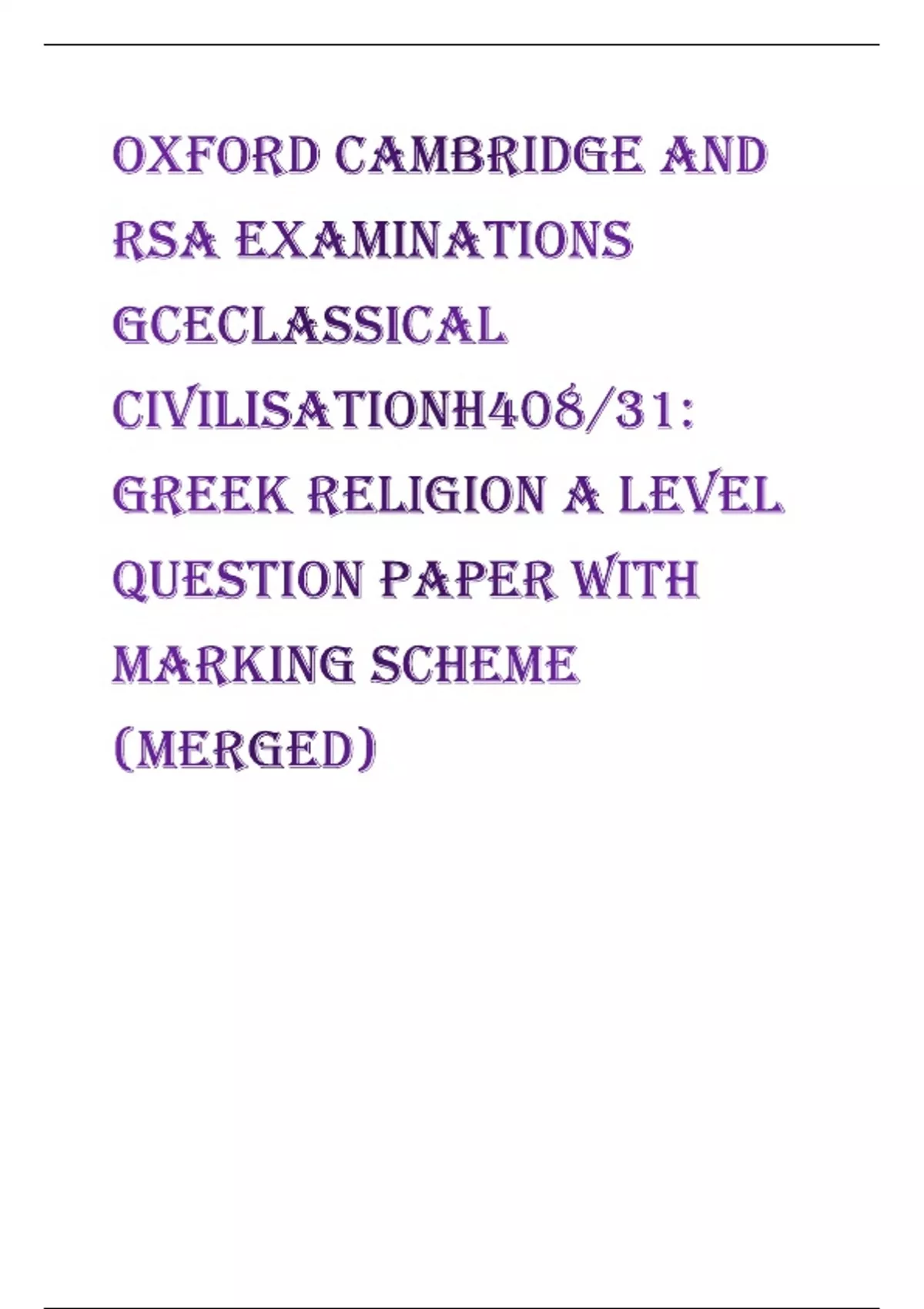 H408/31 Greek Religion