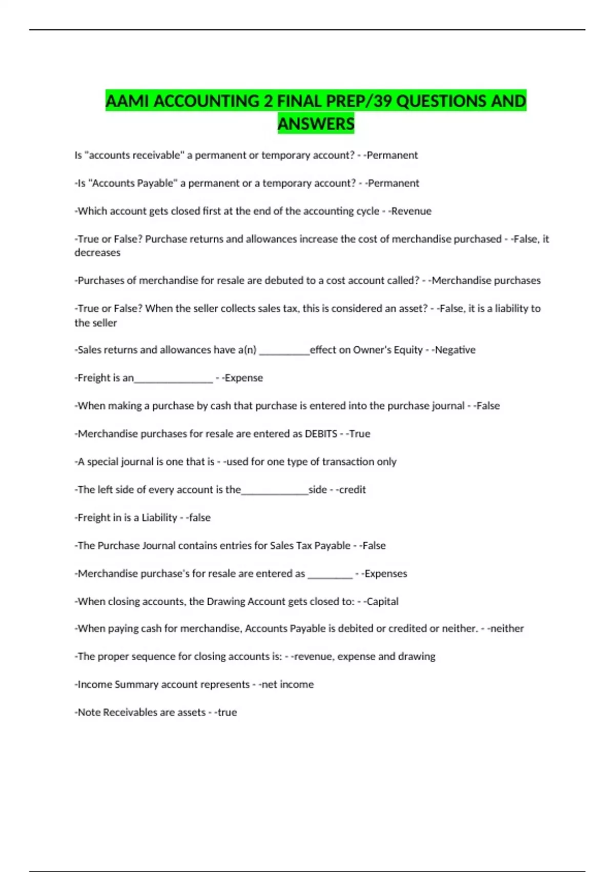 AAMI ACCOUNTING 2 FINAL PREP/39 QUESTIONS AND ANSWERS
