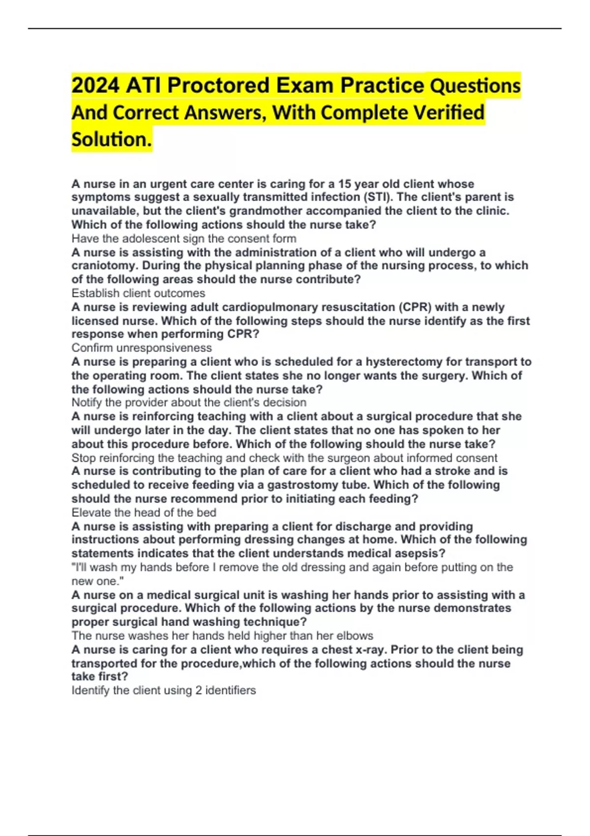 A nurse is preparing a client who is scheduled for a hysterectomy for transport to