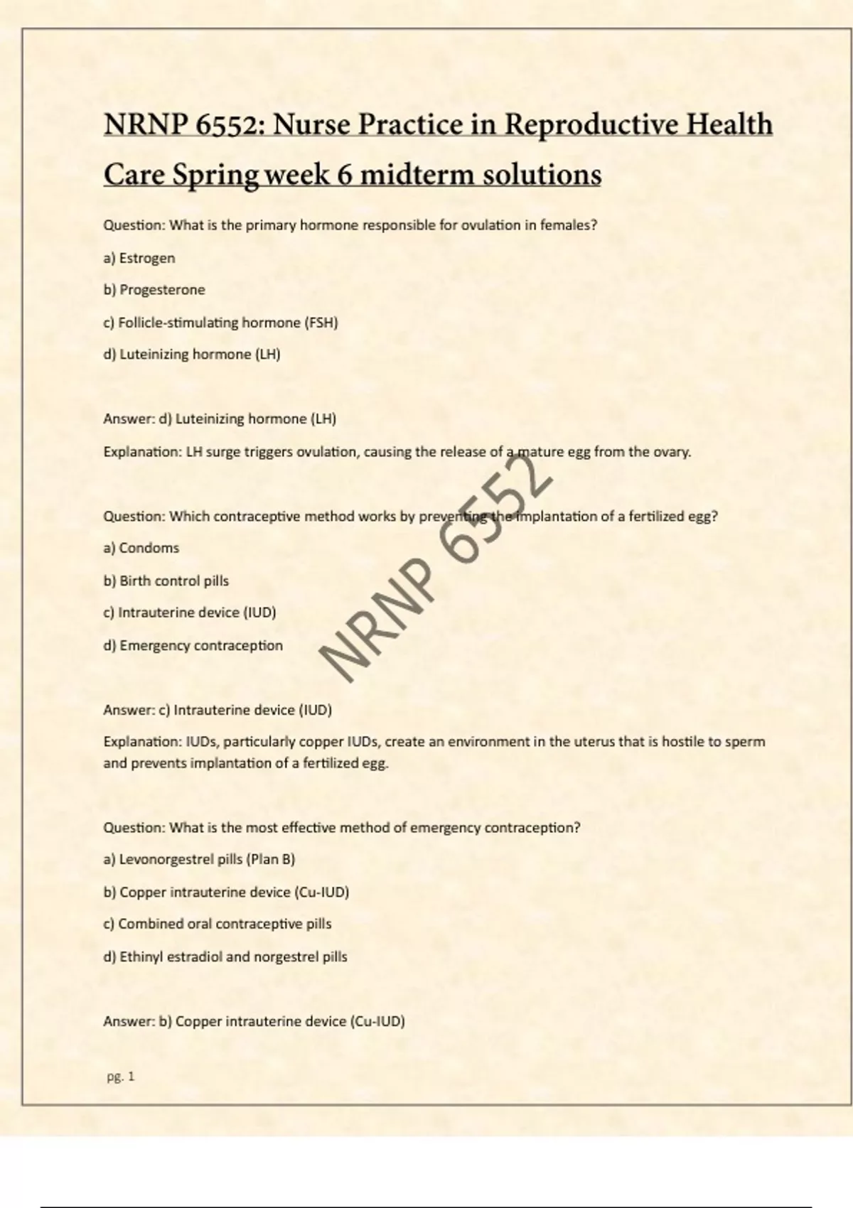 NRNP 6552: Nurse Practice in Reproductive Health Care Spring week 6 midterm solutions 2024