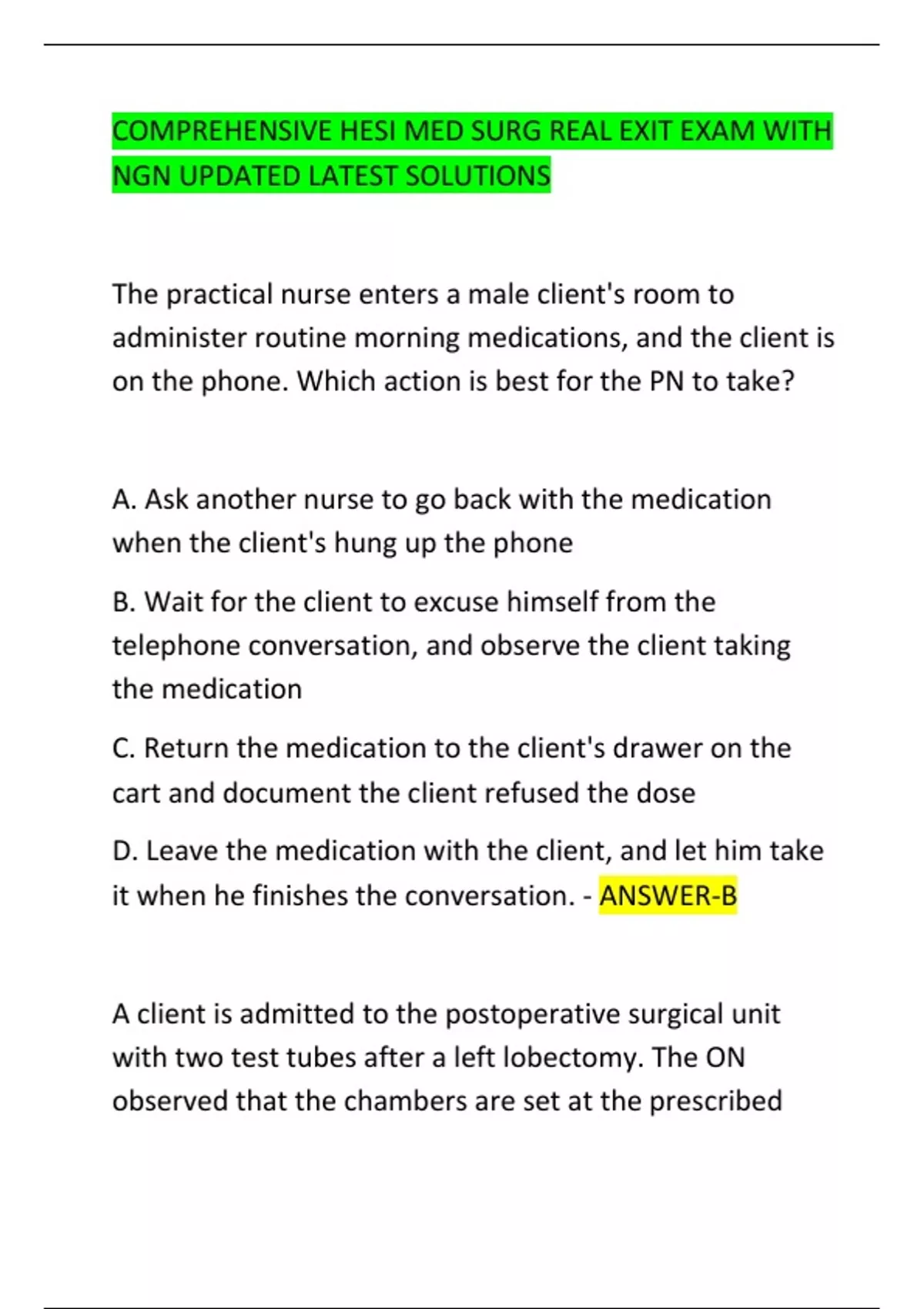 COMPREHENSIVE HESI MED SURG REAL EXIT EXAM WITH NGN UPDATED LATEST SOLUTIONS