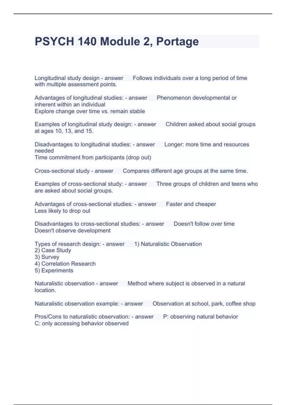 PSYCH 140 Module 2, Portage Questions and Answers 2024